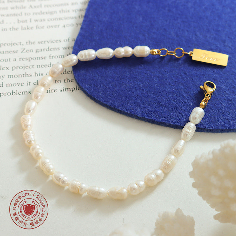 English LOVE Square Plate Lettering Pearl Titanium Steel Bracelet