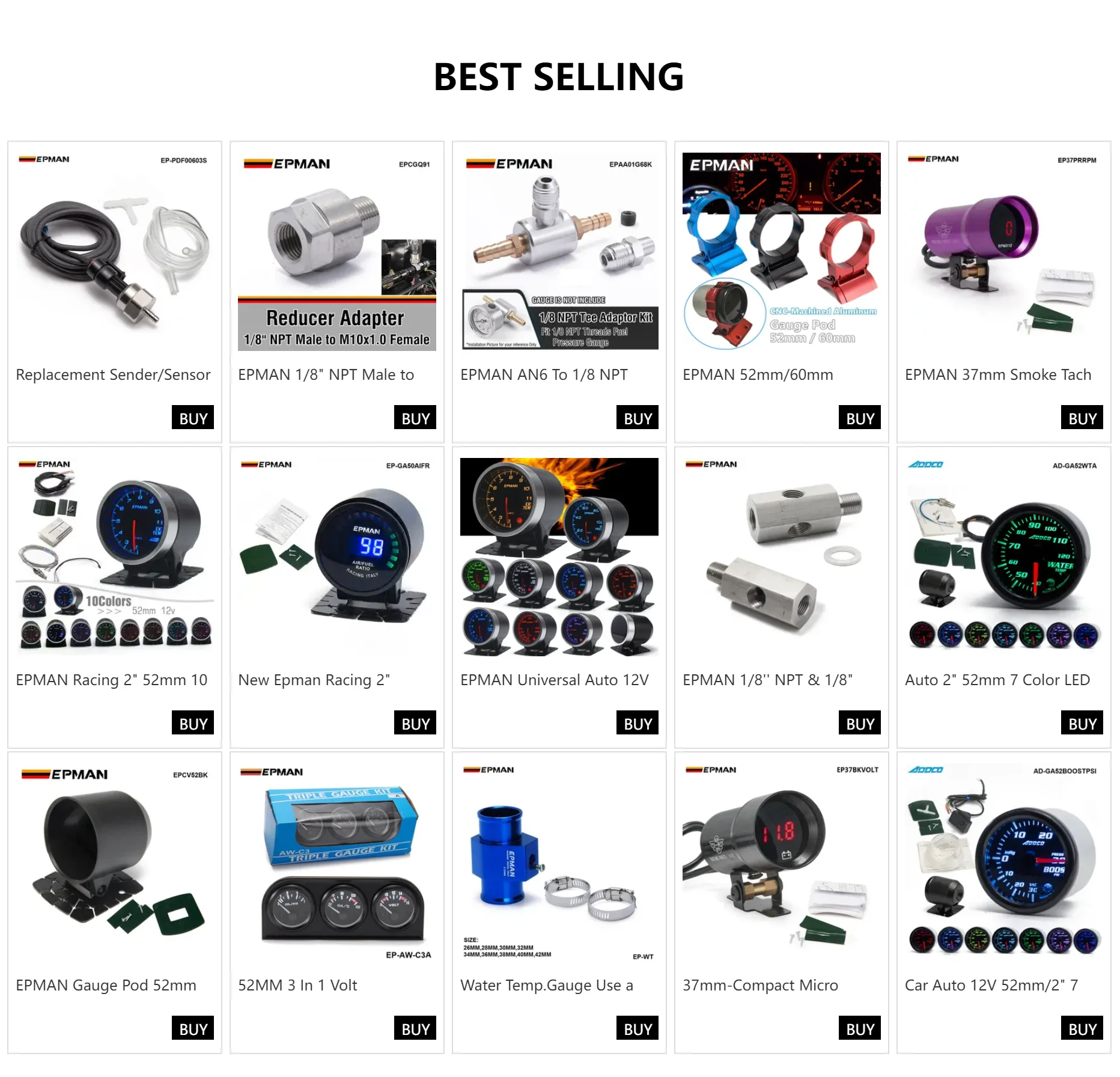 EPMAN 37mm Compact Micro Digital Smoked Boost BAR Gauge Universal 3-4-6-8 Cylinder Engines Black,Purple For BMW F20 EP37BKBOOST