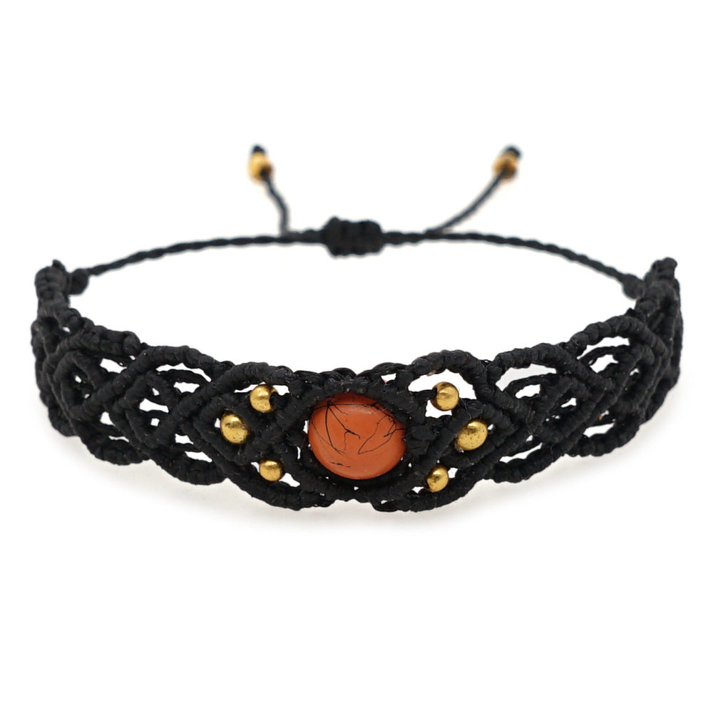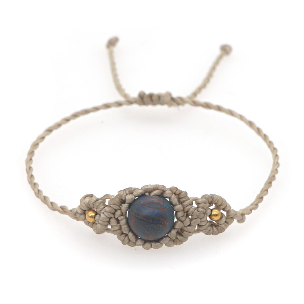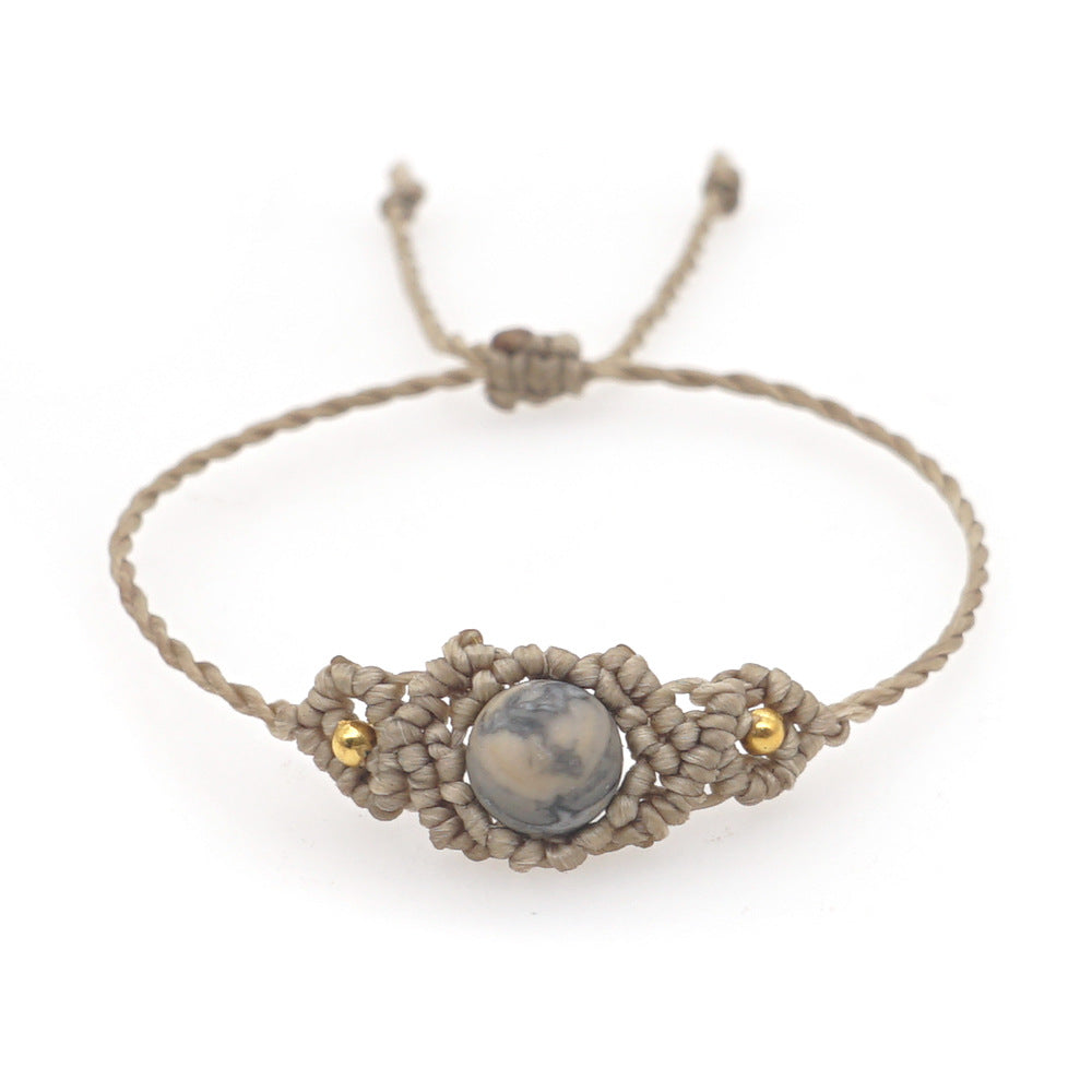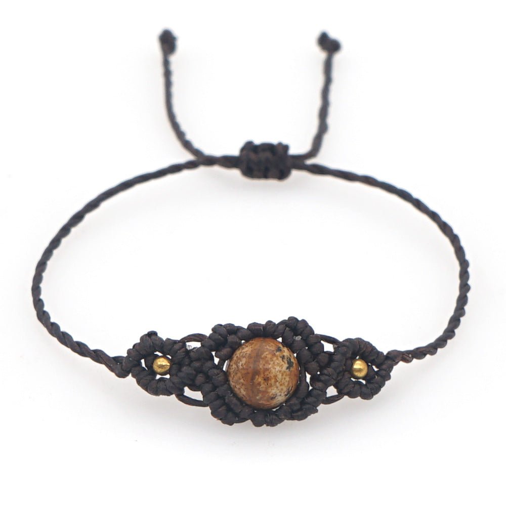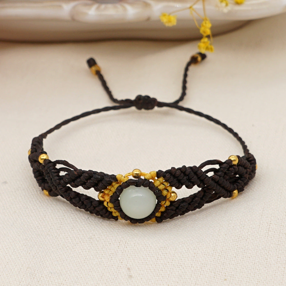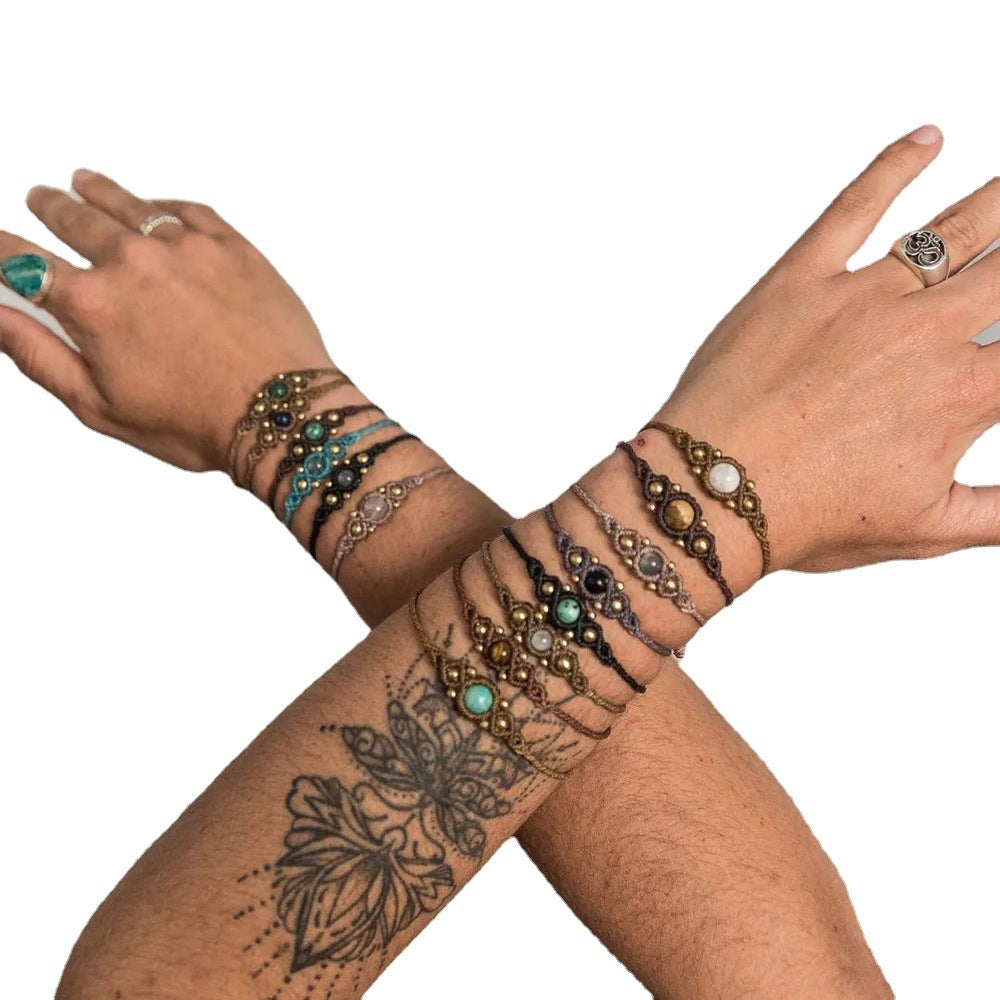 Ethnic Style Wax Rope Thread Carrying Strap Handmade Natural Stone Beaded Braided Rope Bracelet