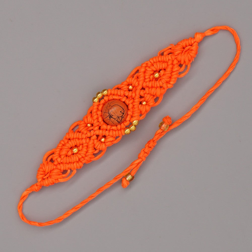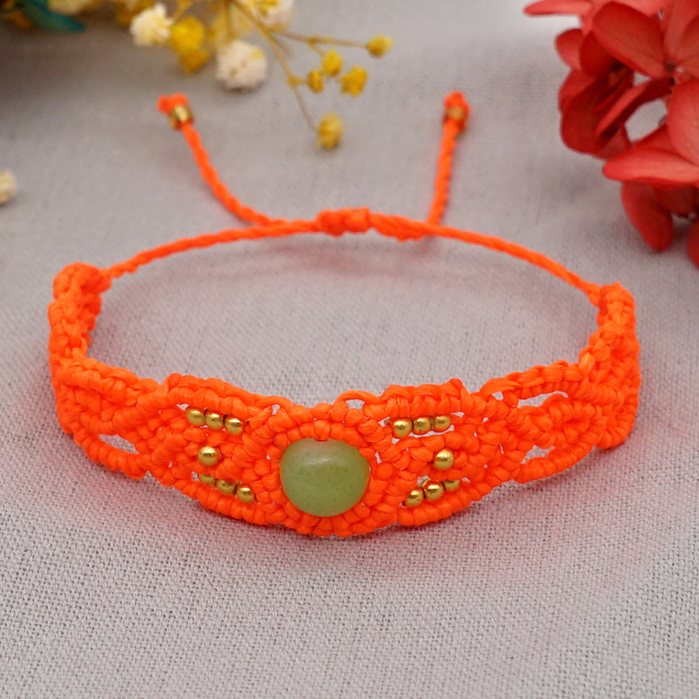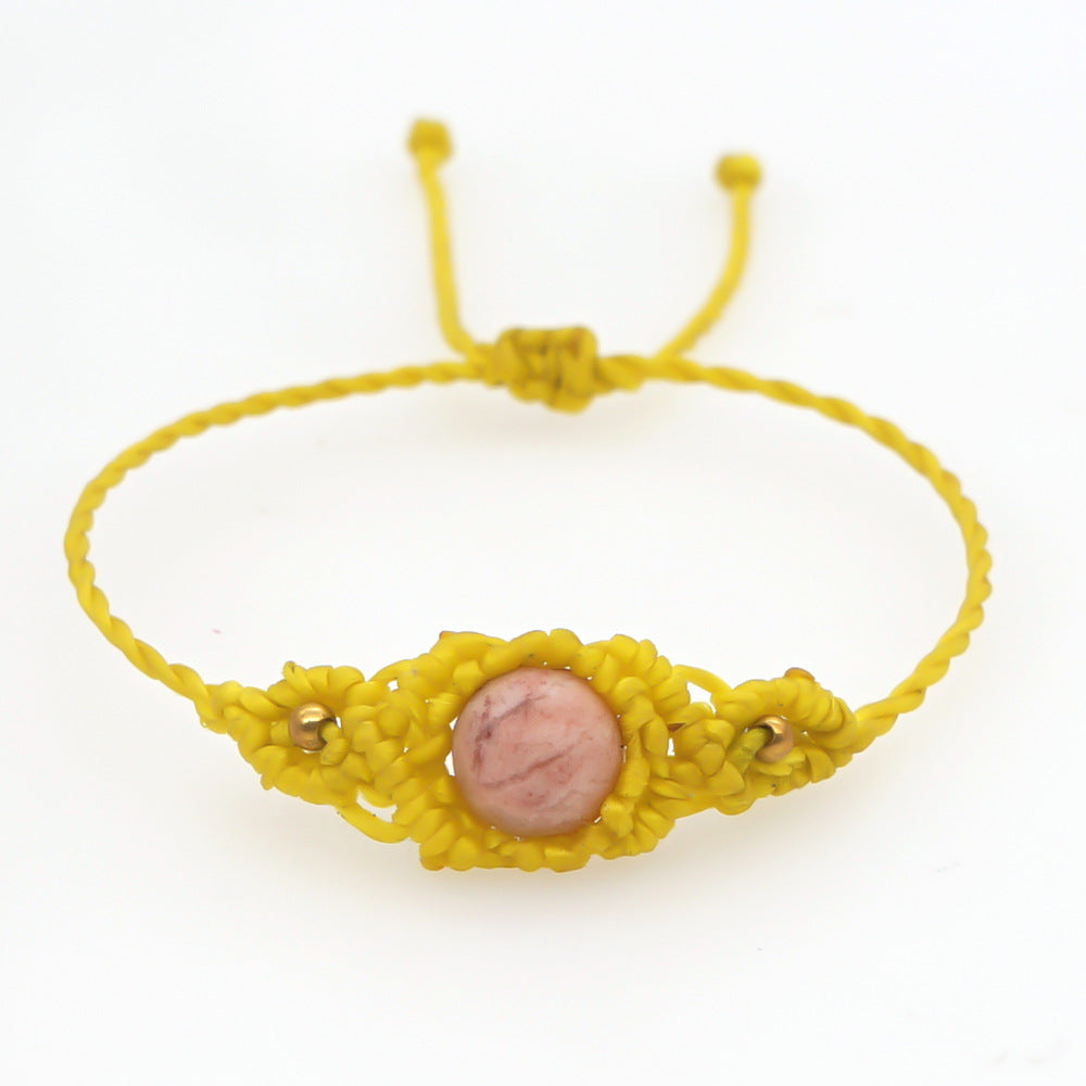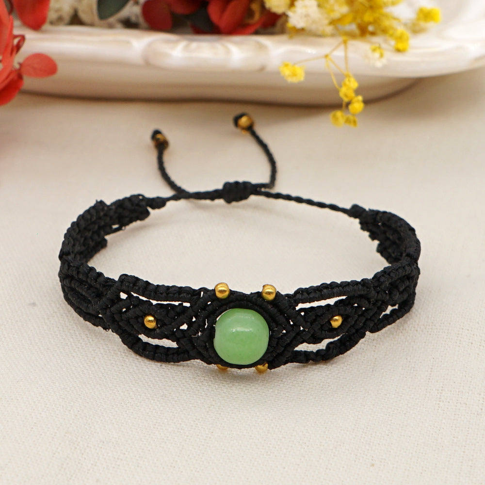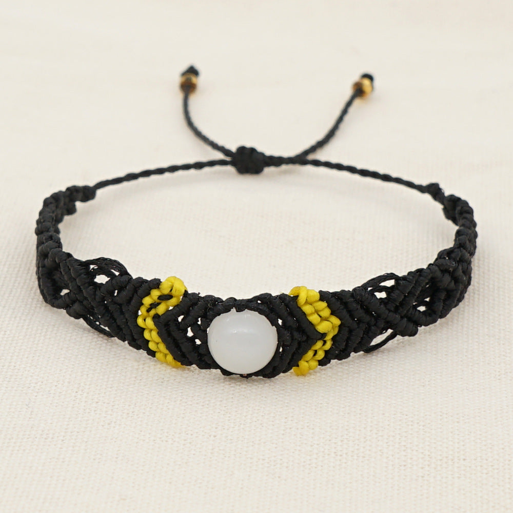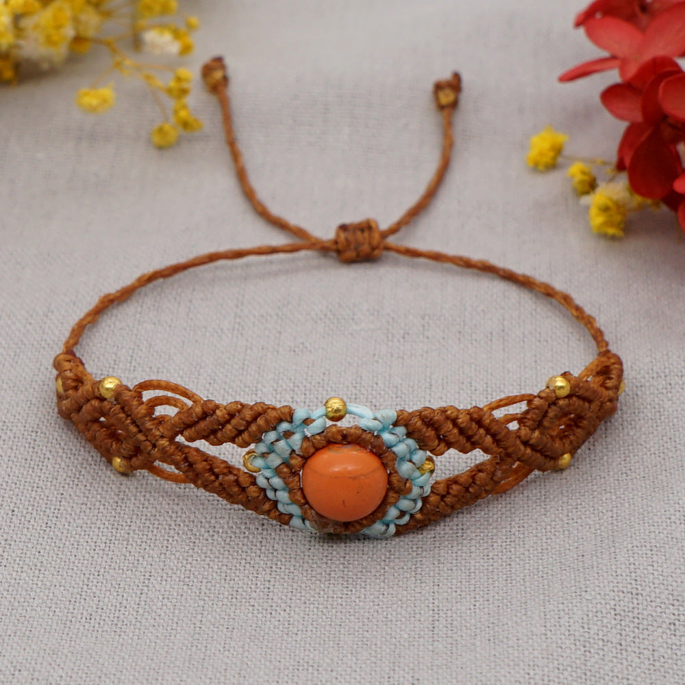 Ethnic Style Wax Rope Thread Carrying Strap Handmade Natural Stone Beaded Braided Rope Bracelet