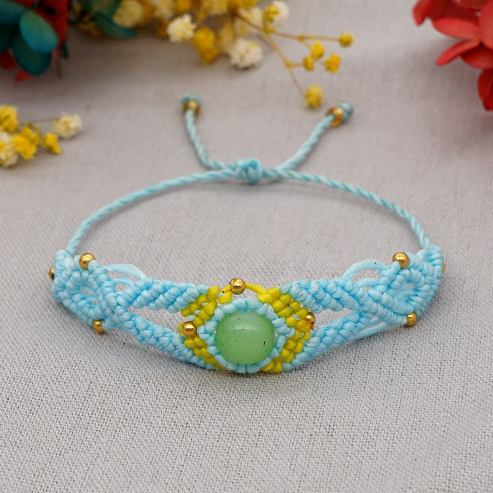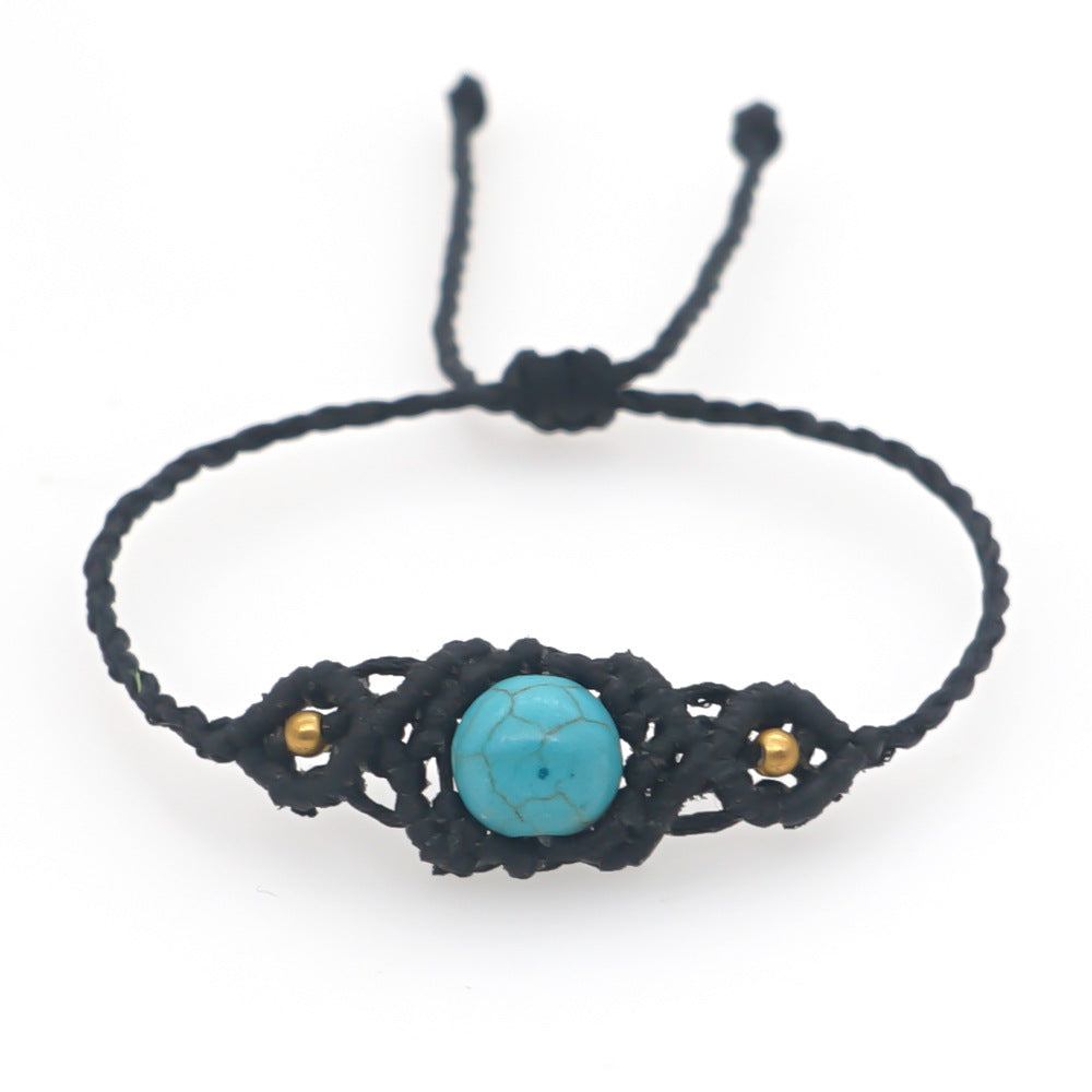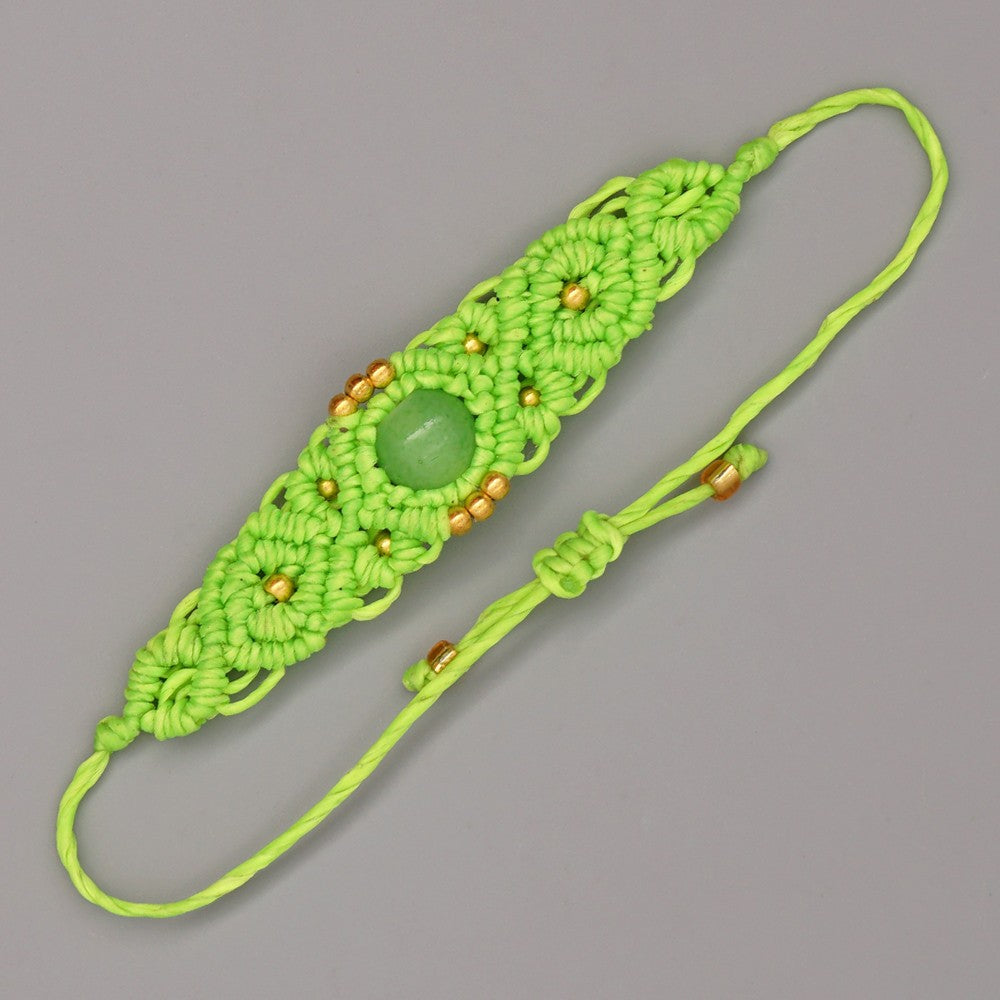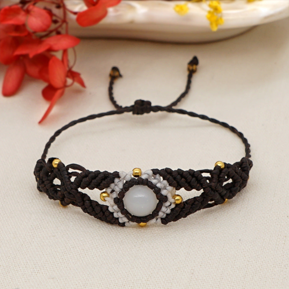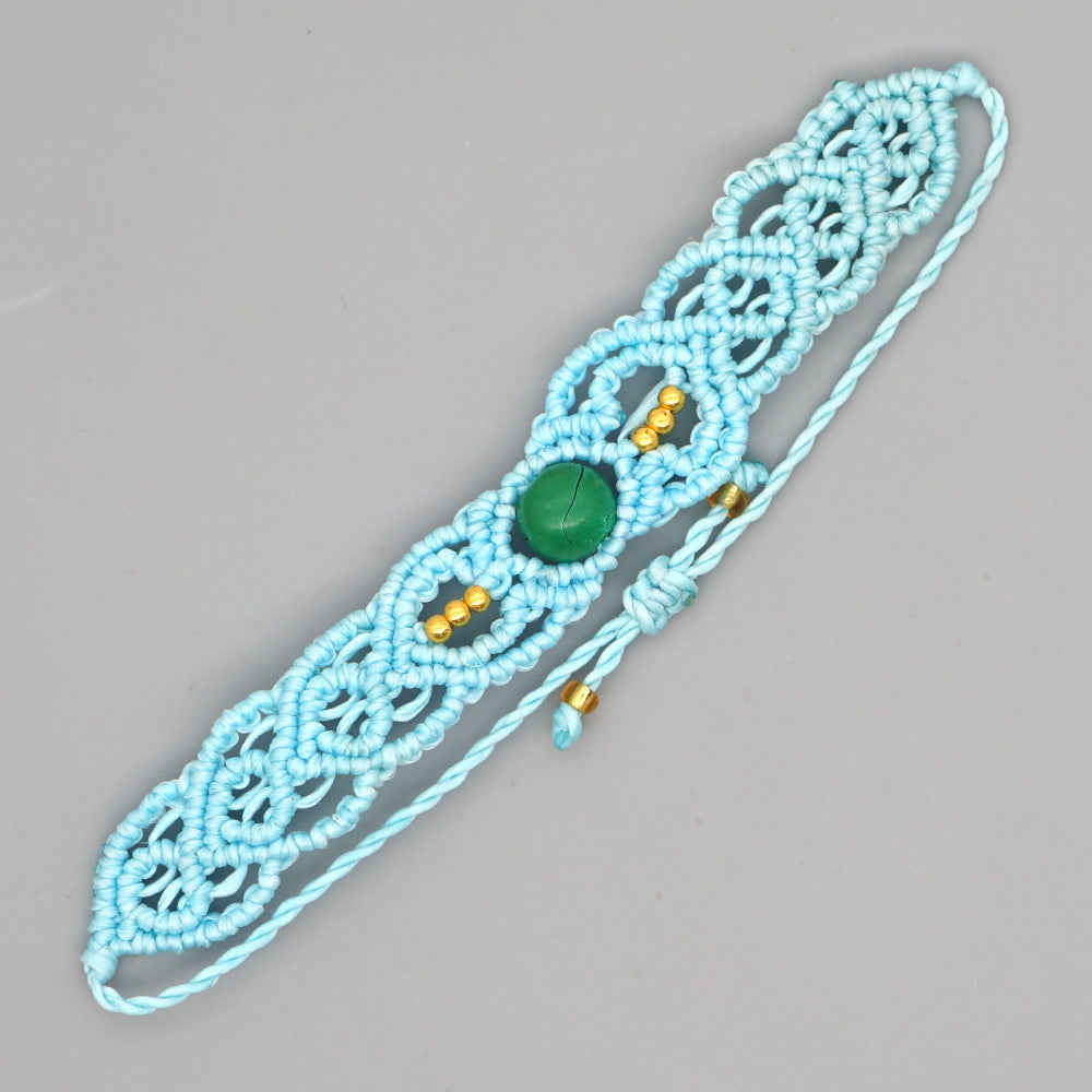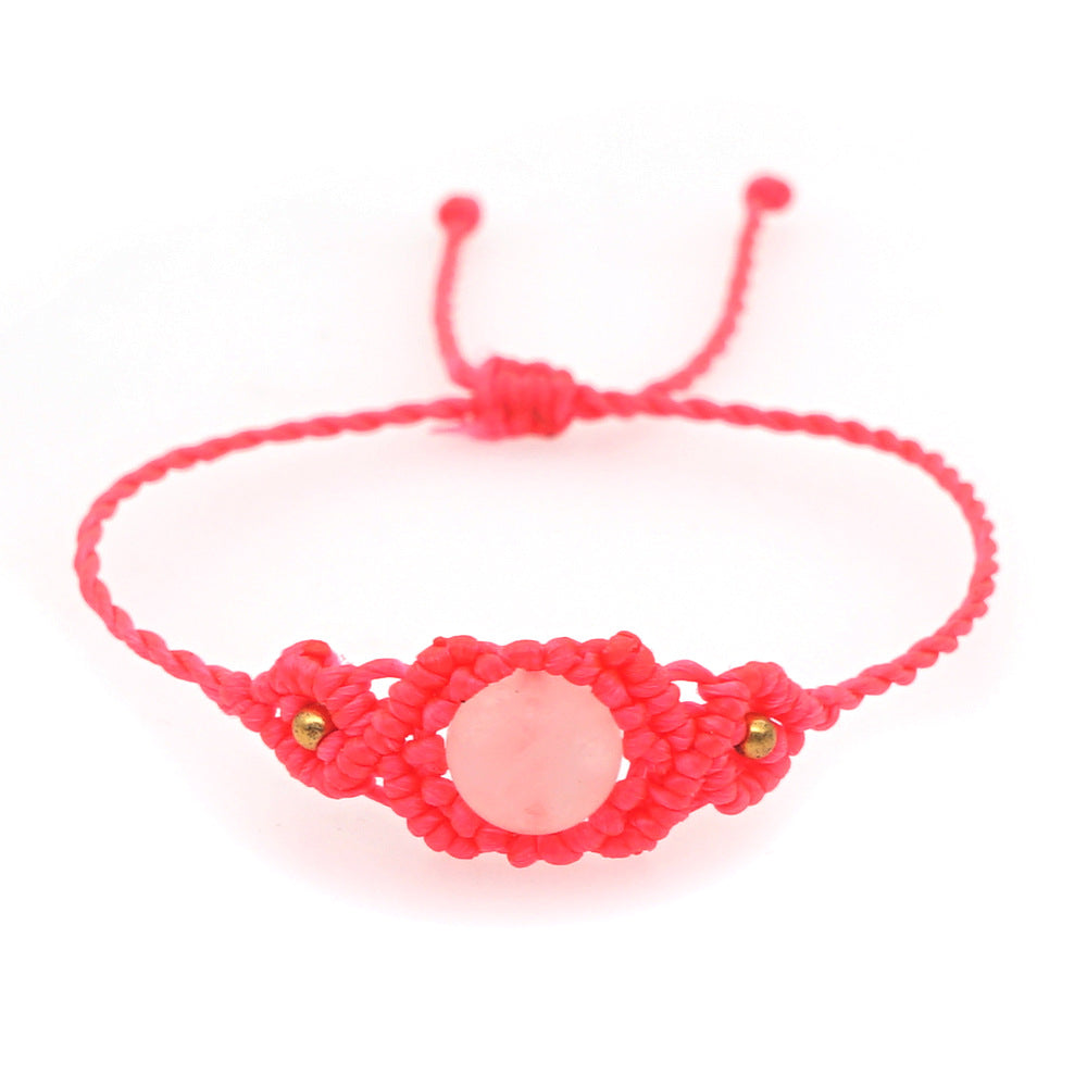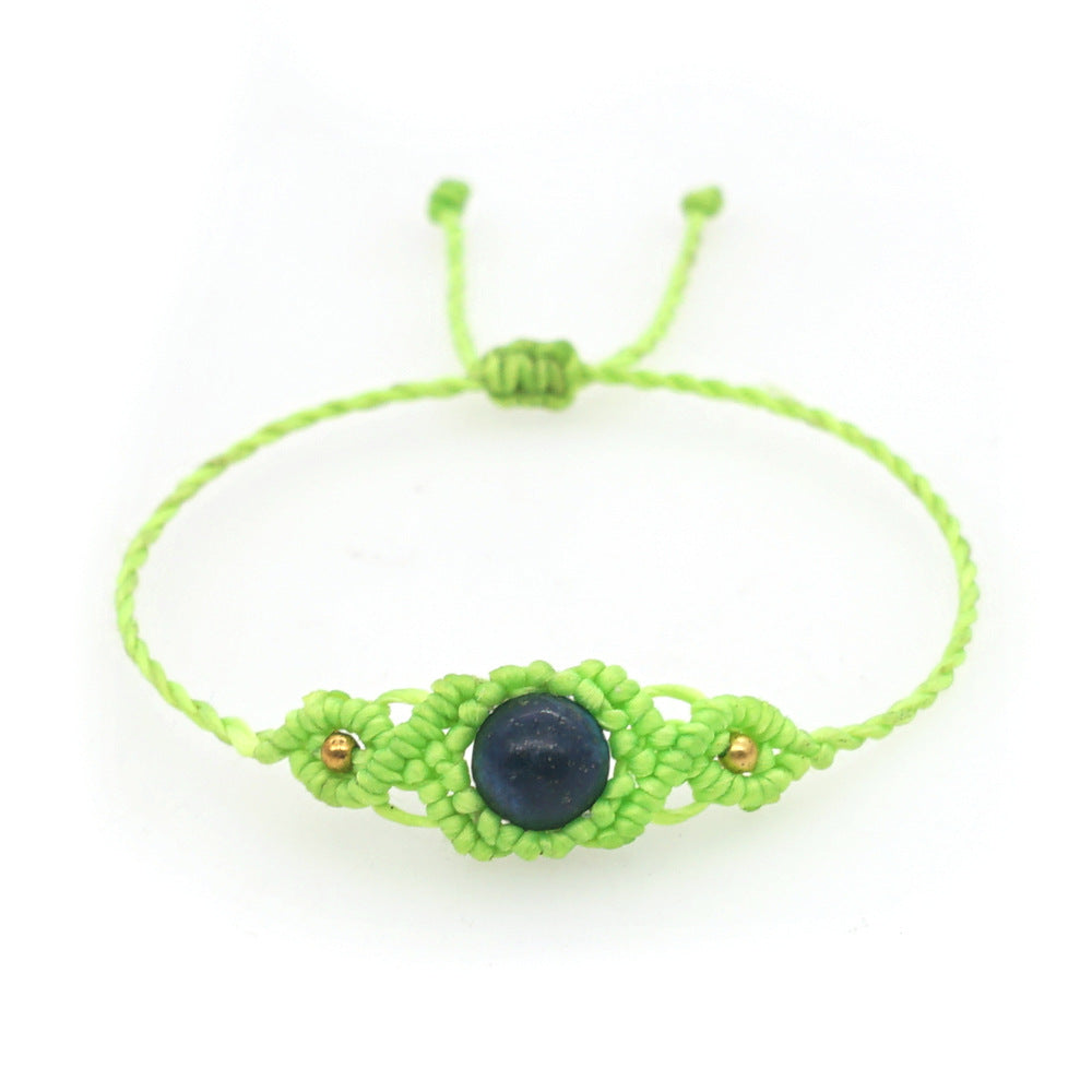 Ethnic Style Wax Rope Thread Carrying Strap Handmade Natural Stone Beaded Braided Rope Bracelet