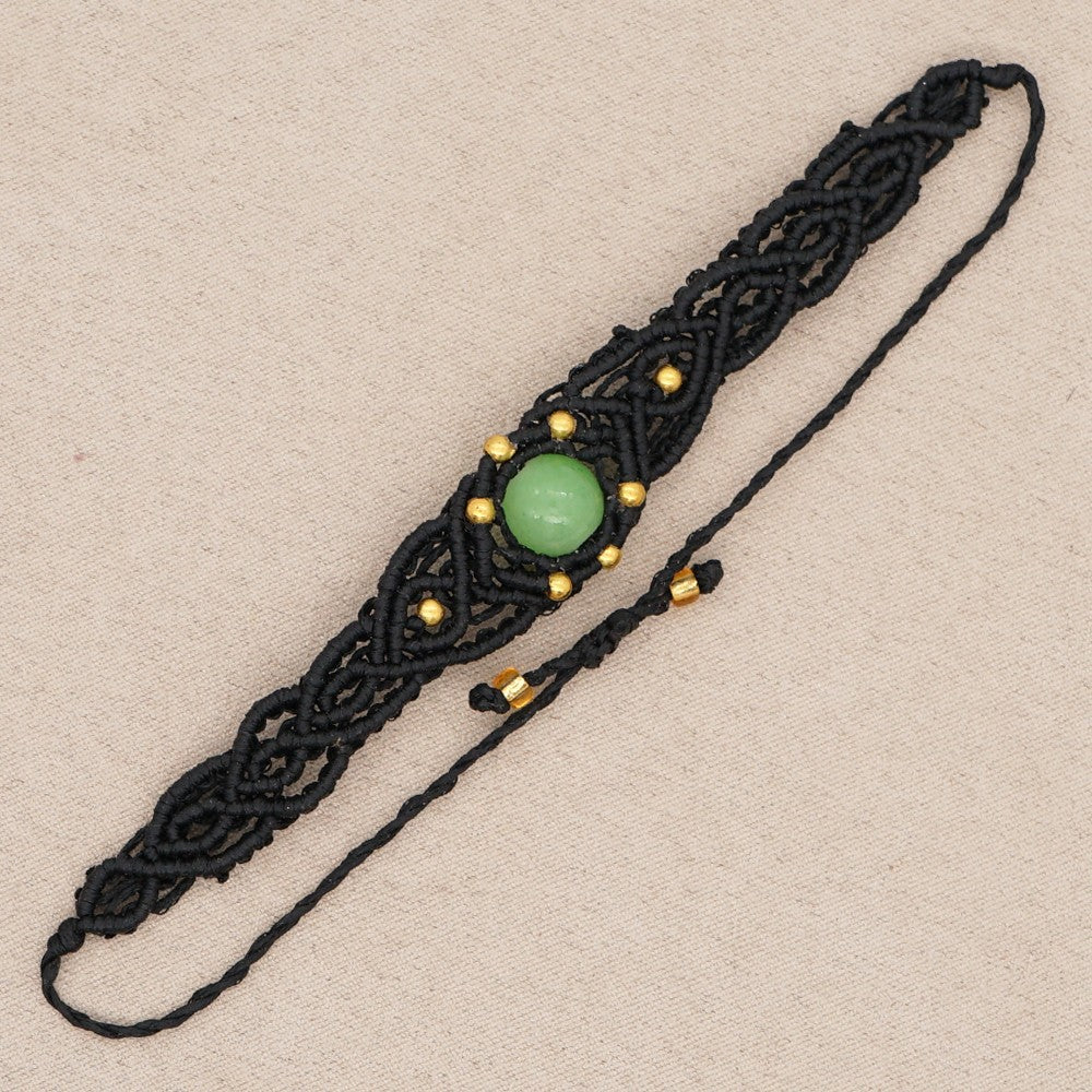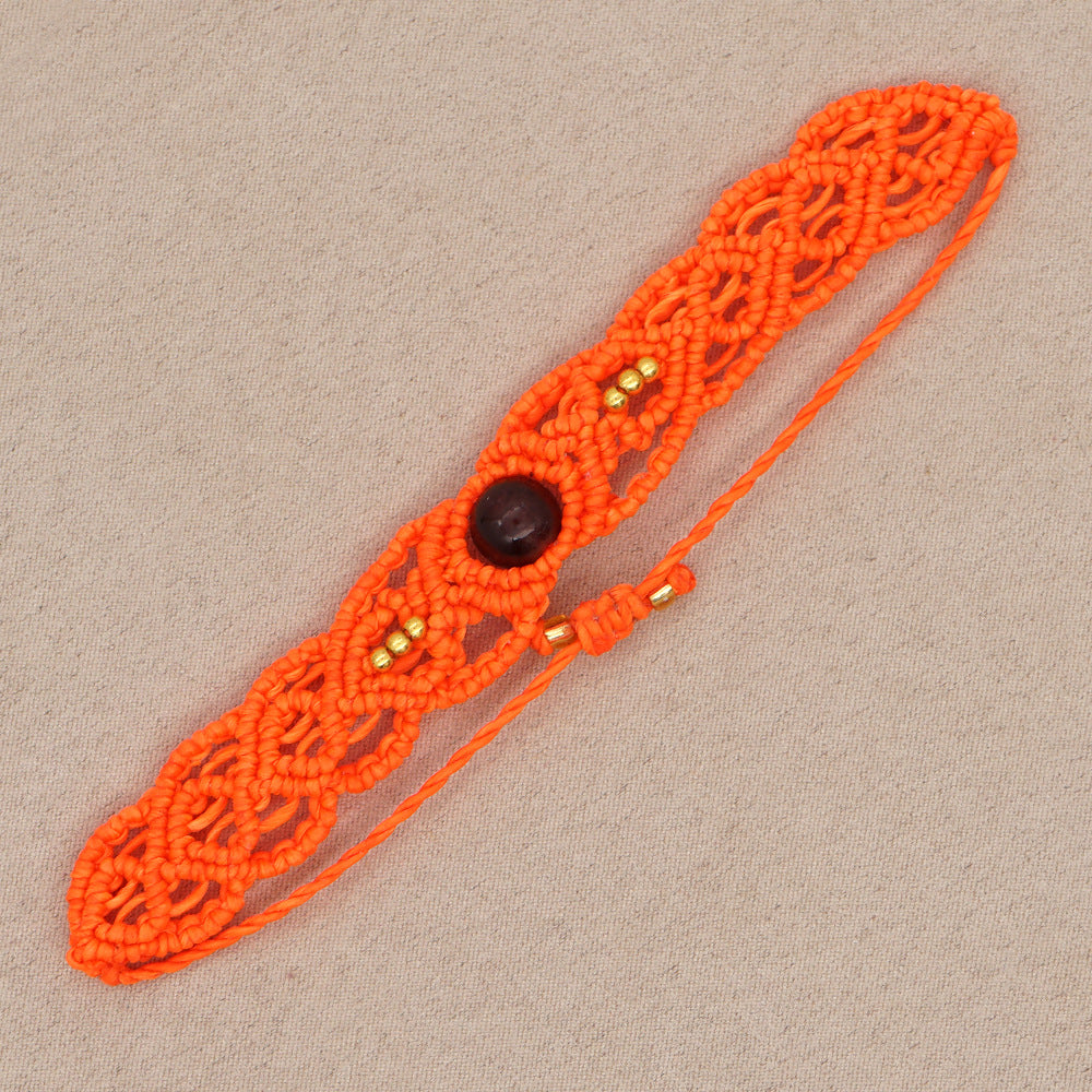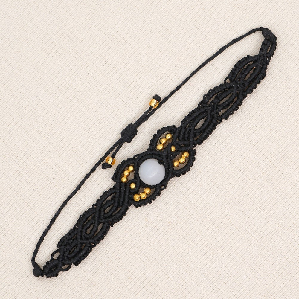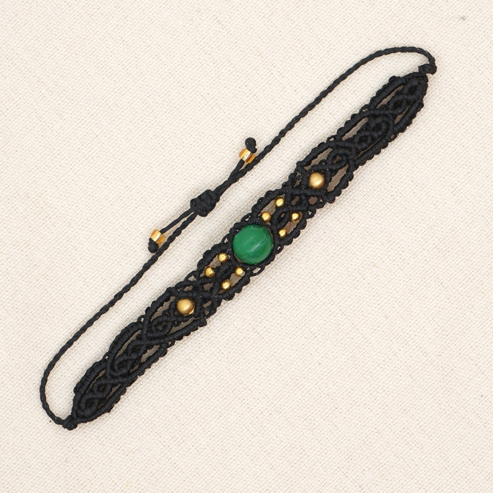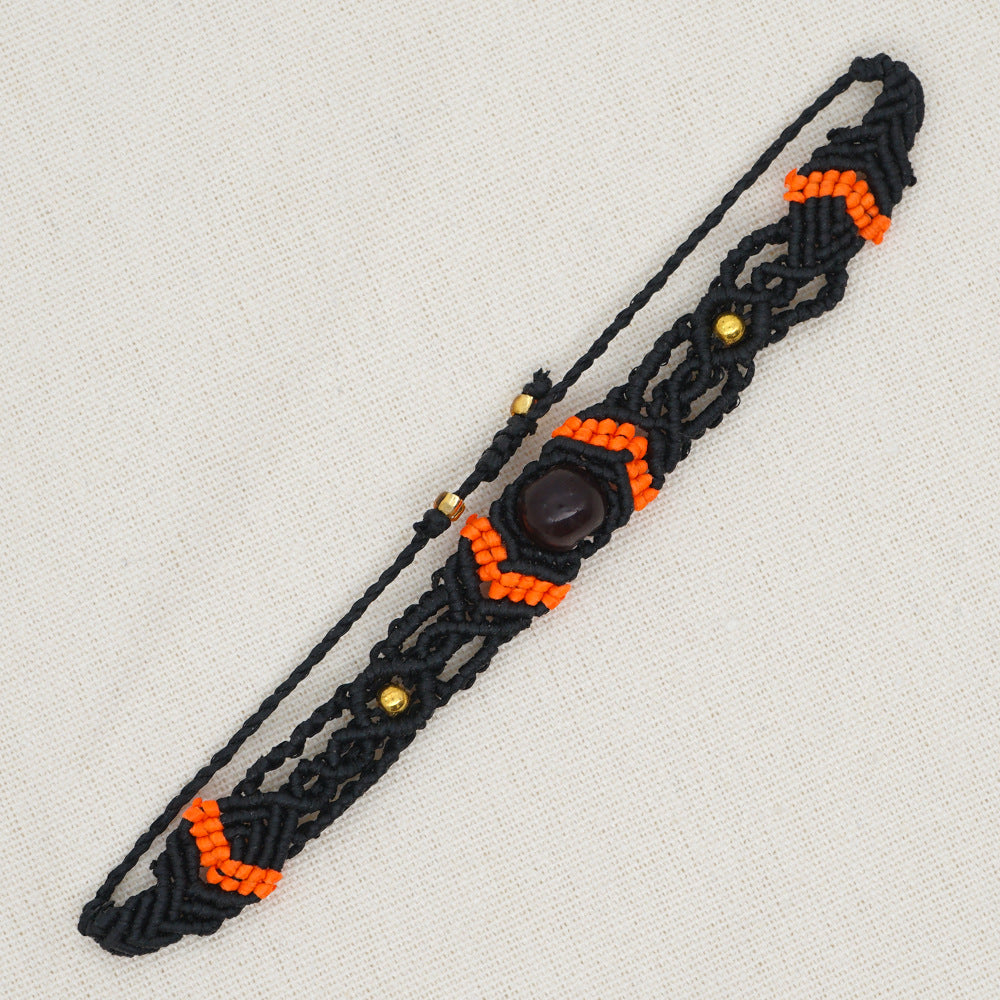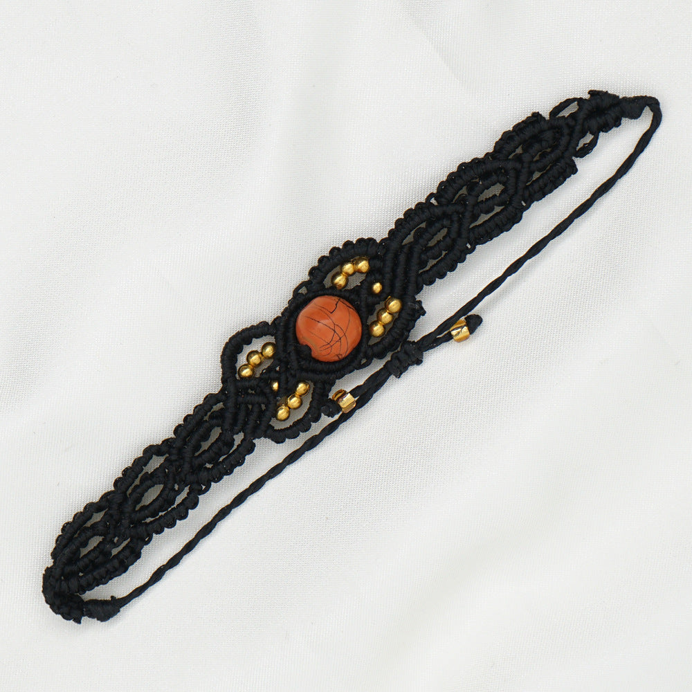 Ethnic Style Wax Rope Thread Carrying Strap Handmade Natural Stone Beaded Braided Rope Bracelet