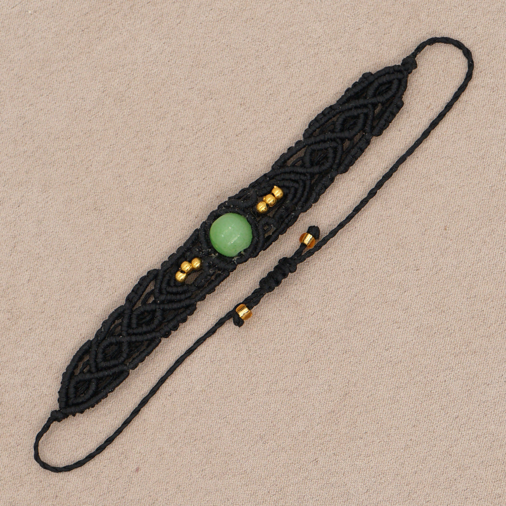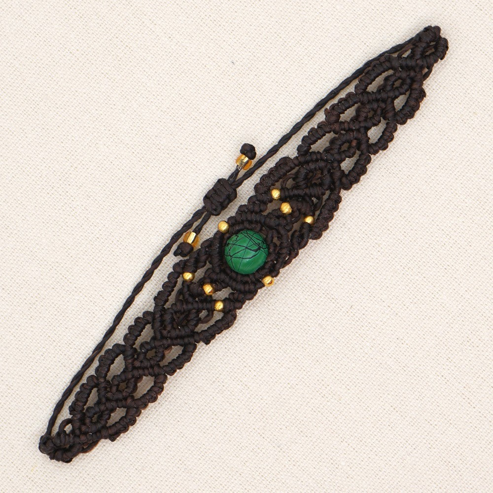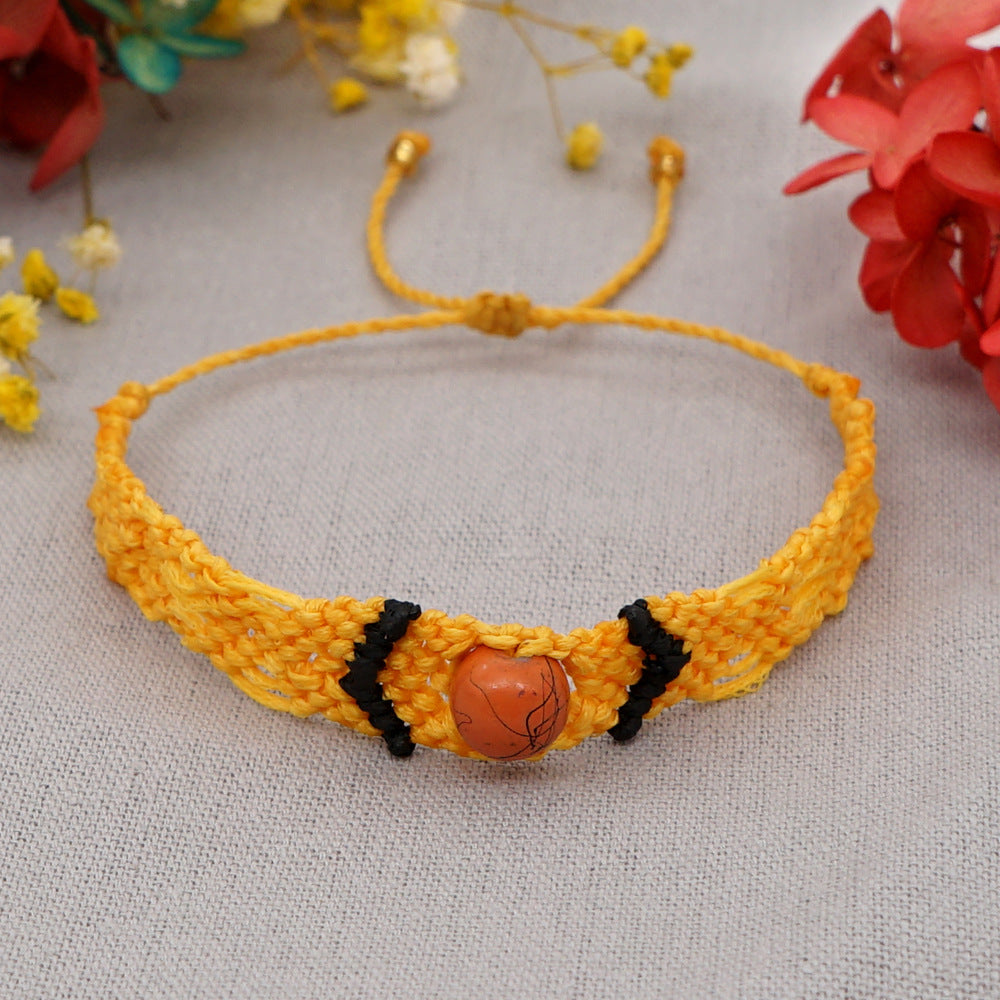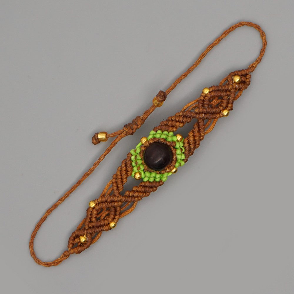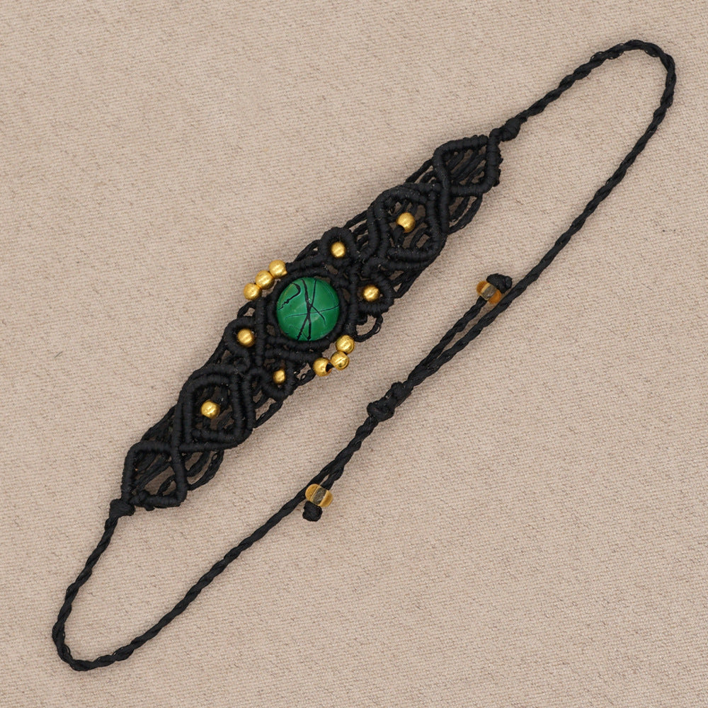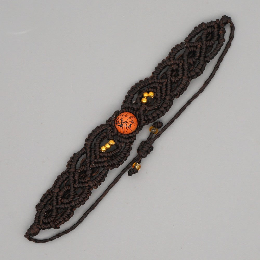 Ethnic Style Wax Rope Thread Carrying Strap Handmade Natural Stone Beaded Braided Rope Bracelet