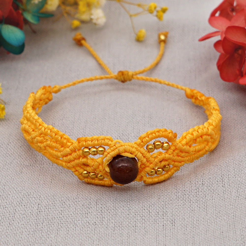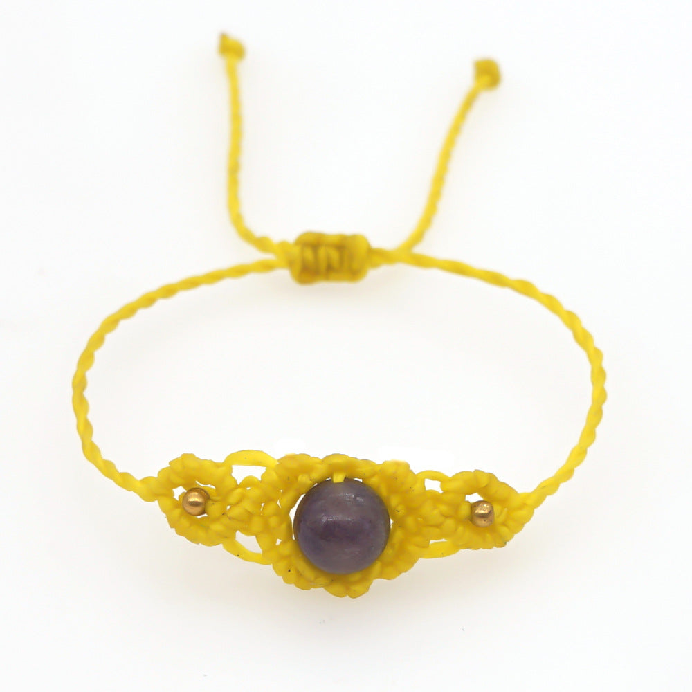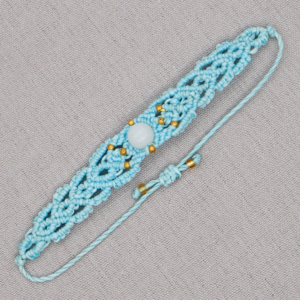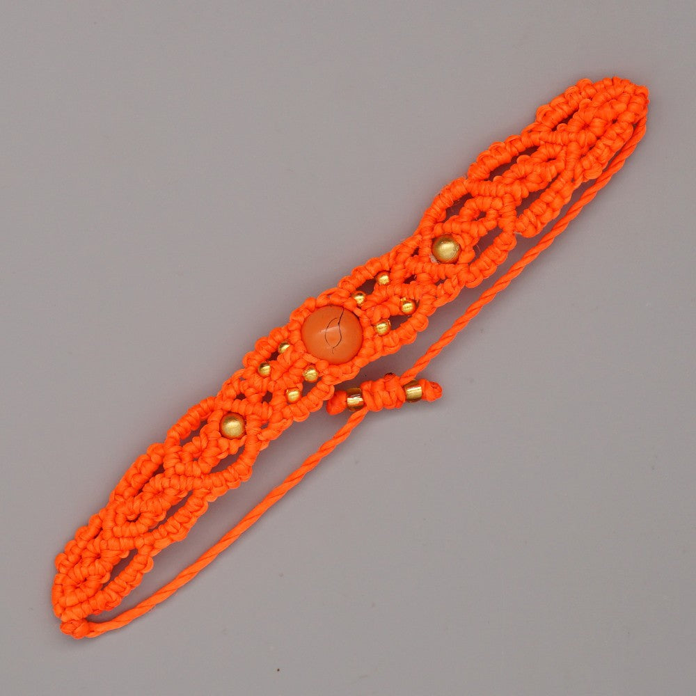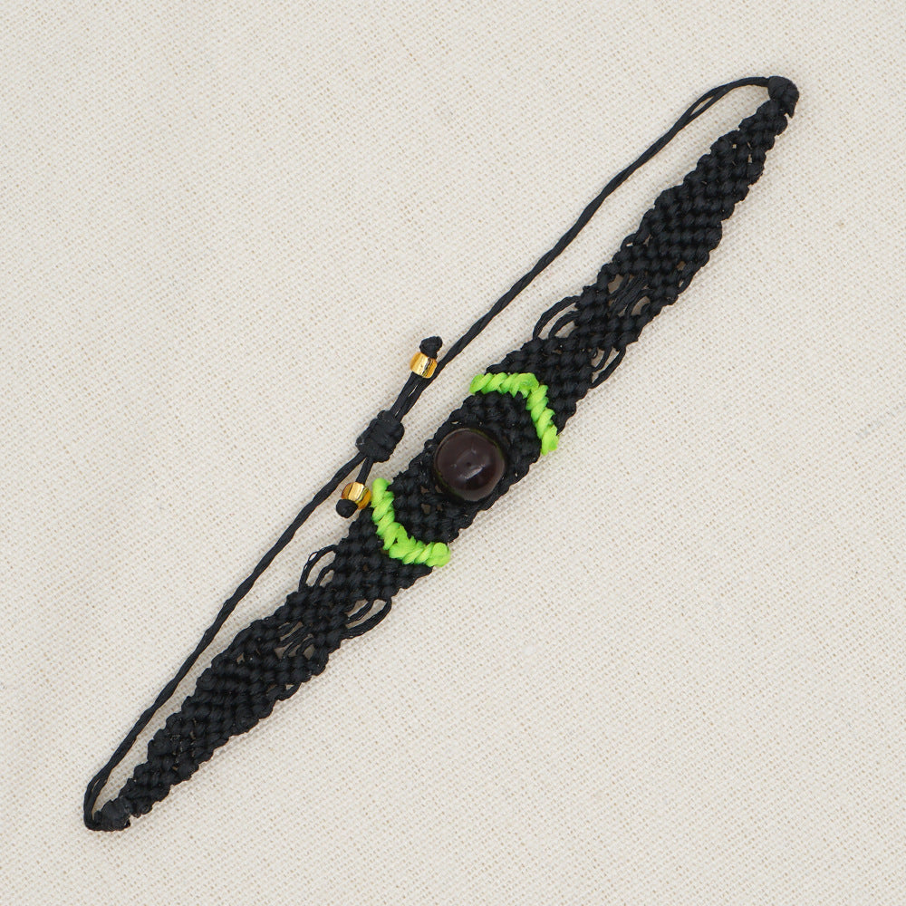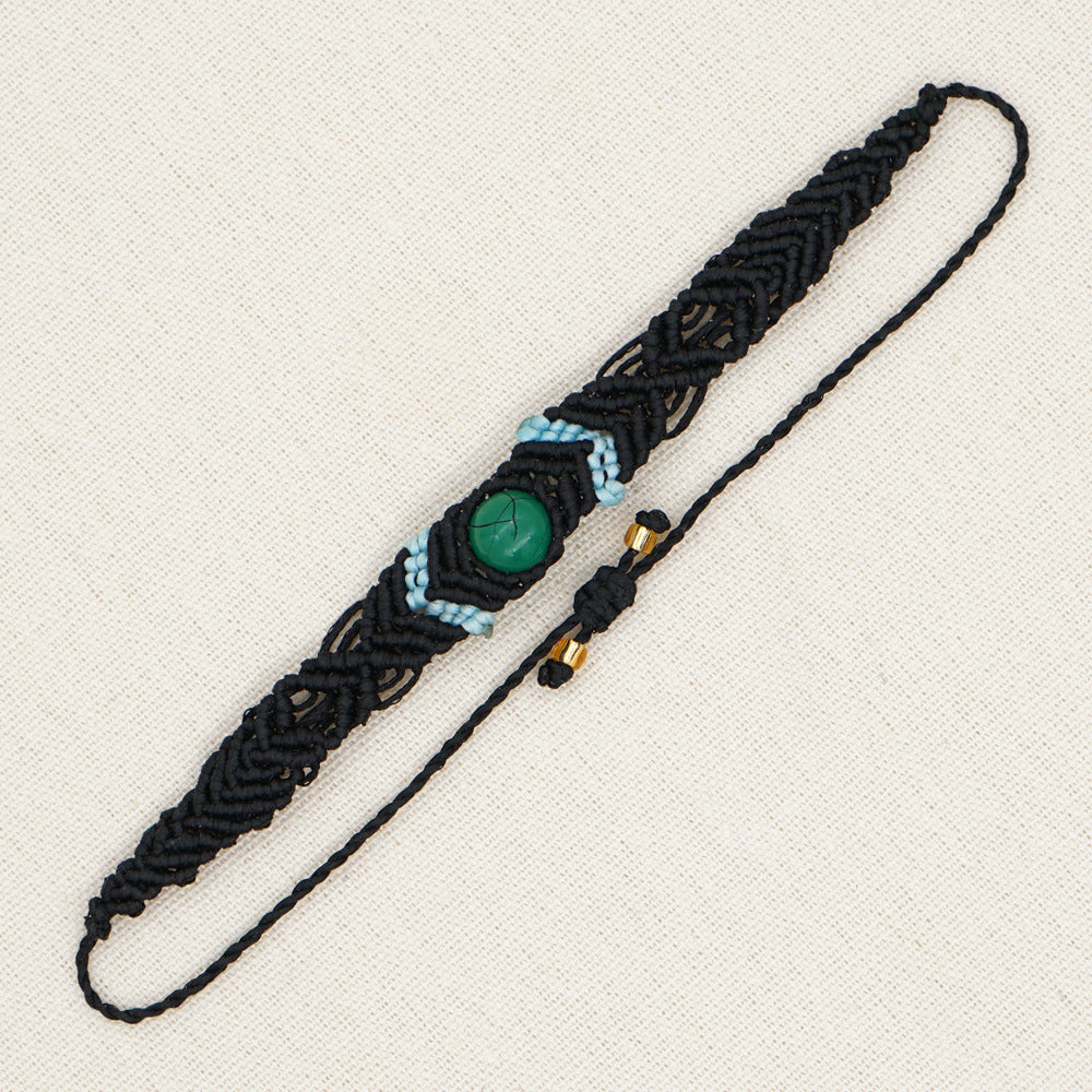 Ethnic Style Wax Rope Thread Carrying Strap Handmade Natural Stone Beaded Braided Rope Bracelet