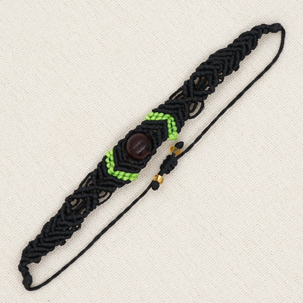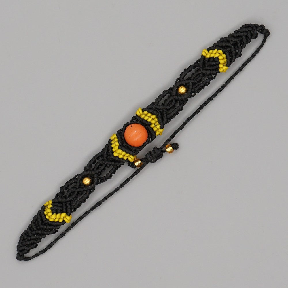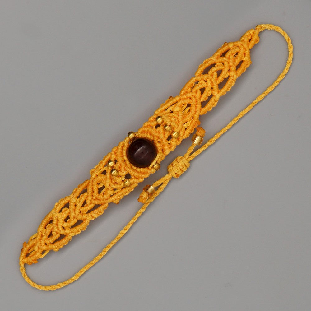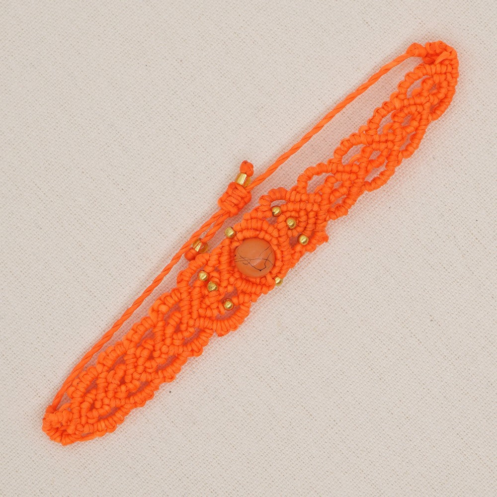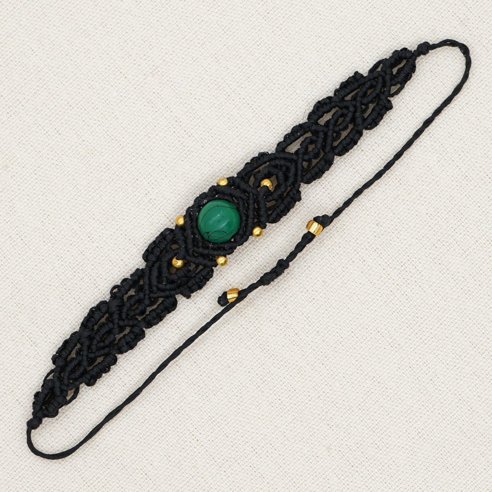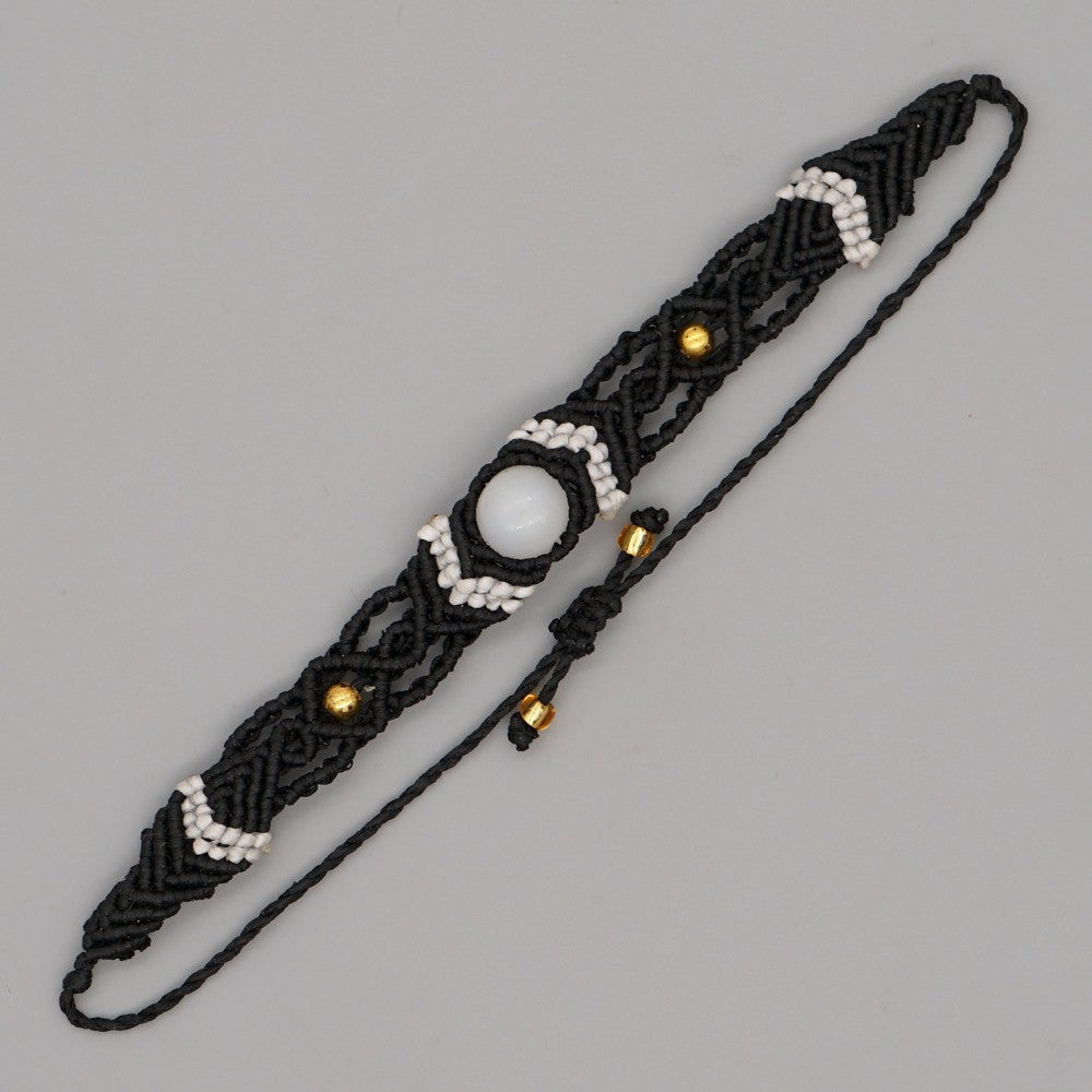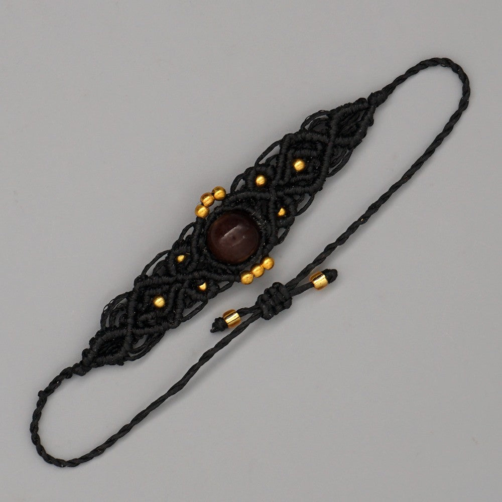 Ethnic Style Wax Rope Thread Carrying Strap Handmade Natural Stone Beaded Braided Rope Bracelet