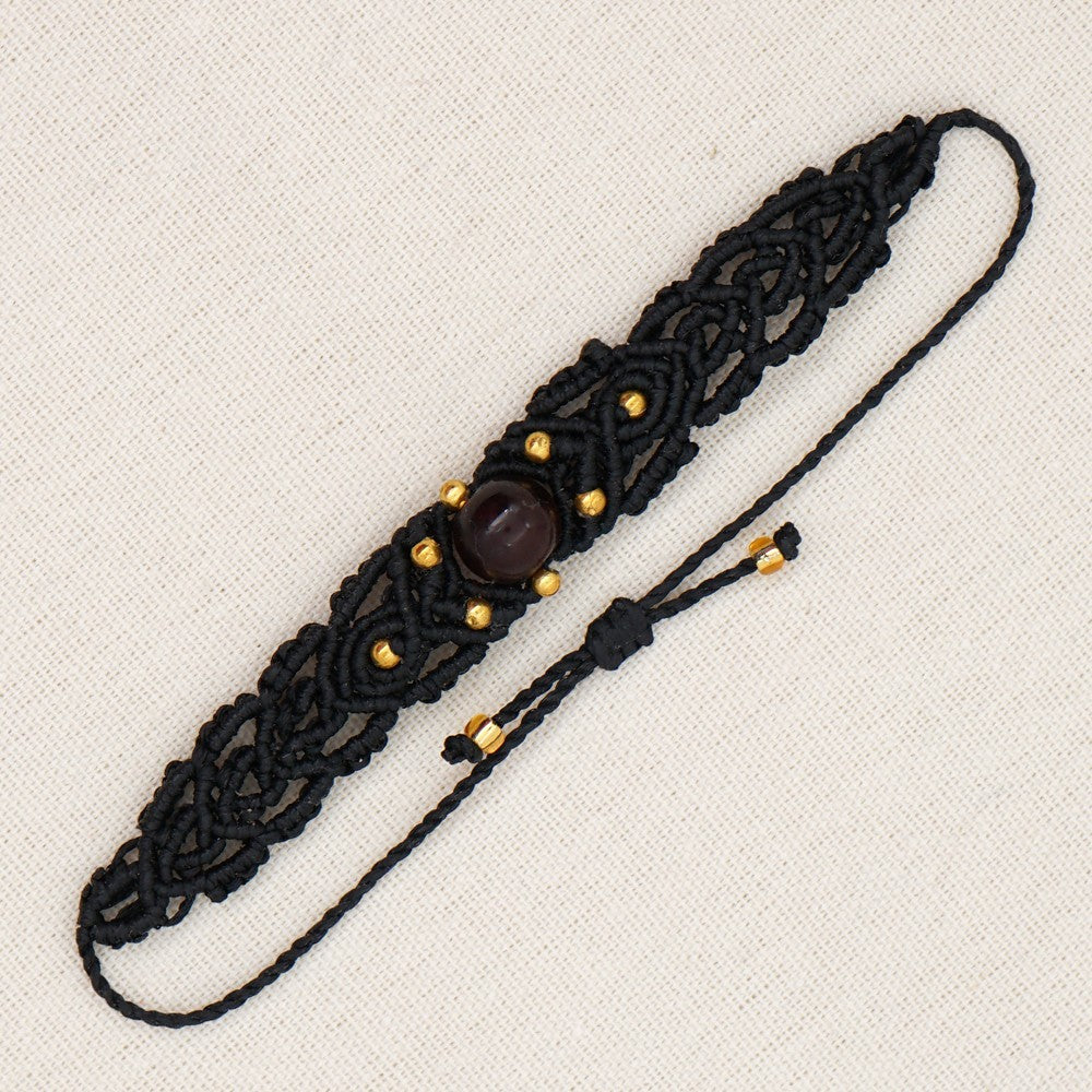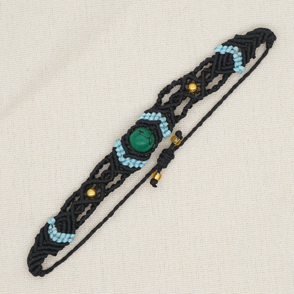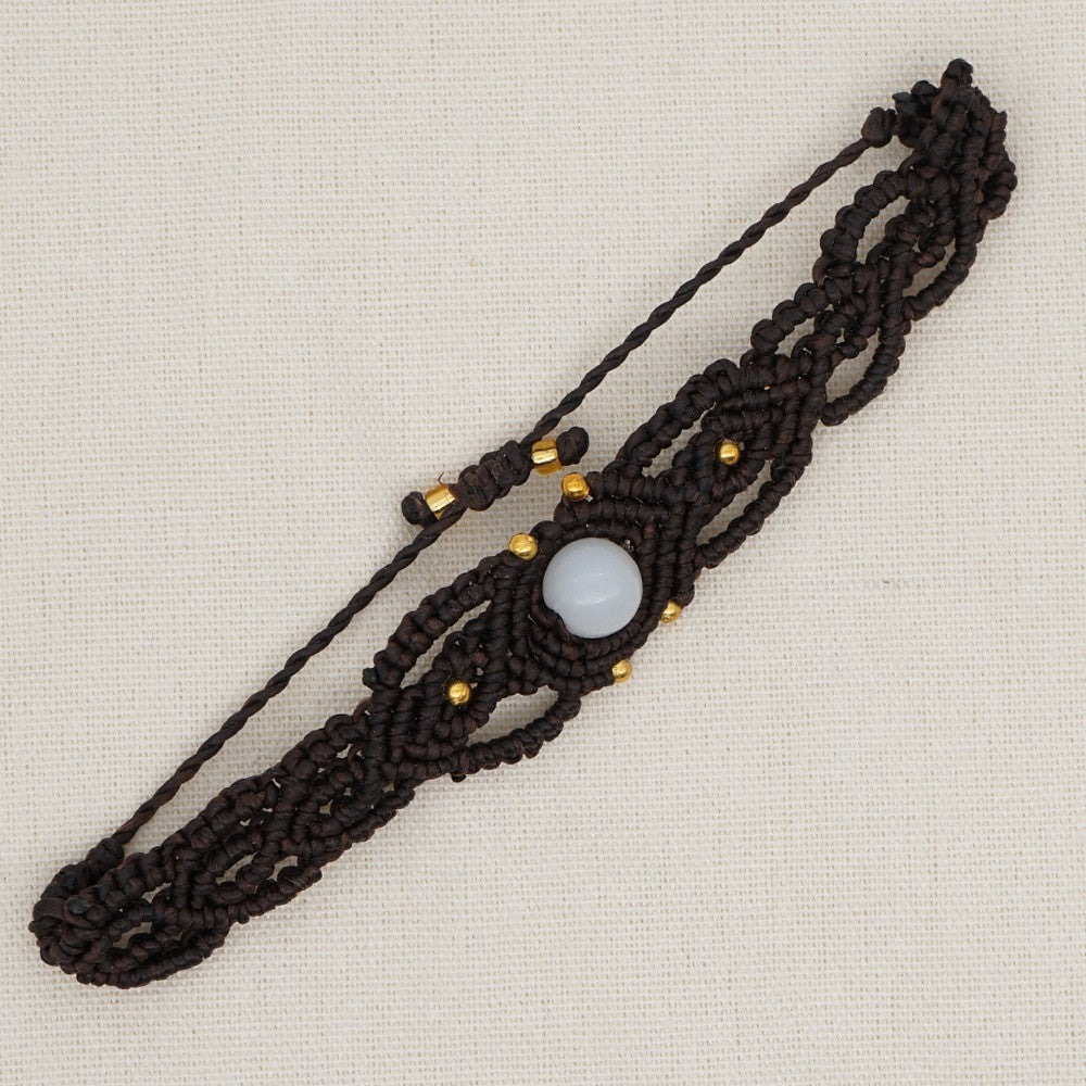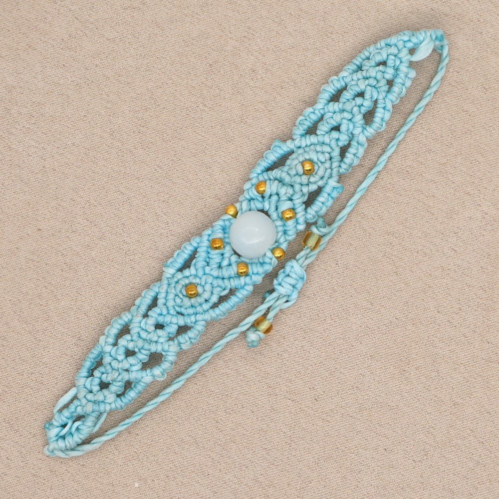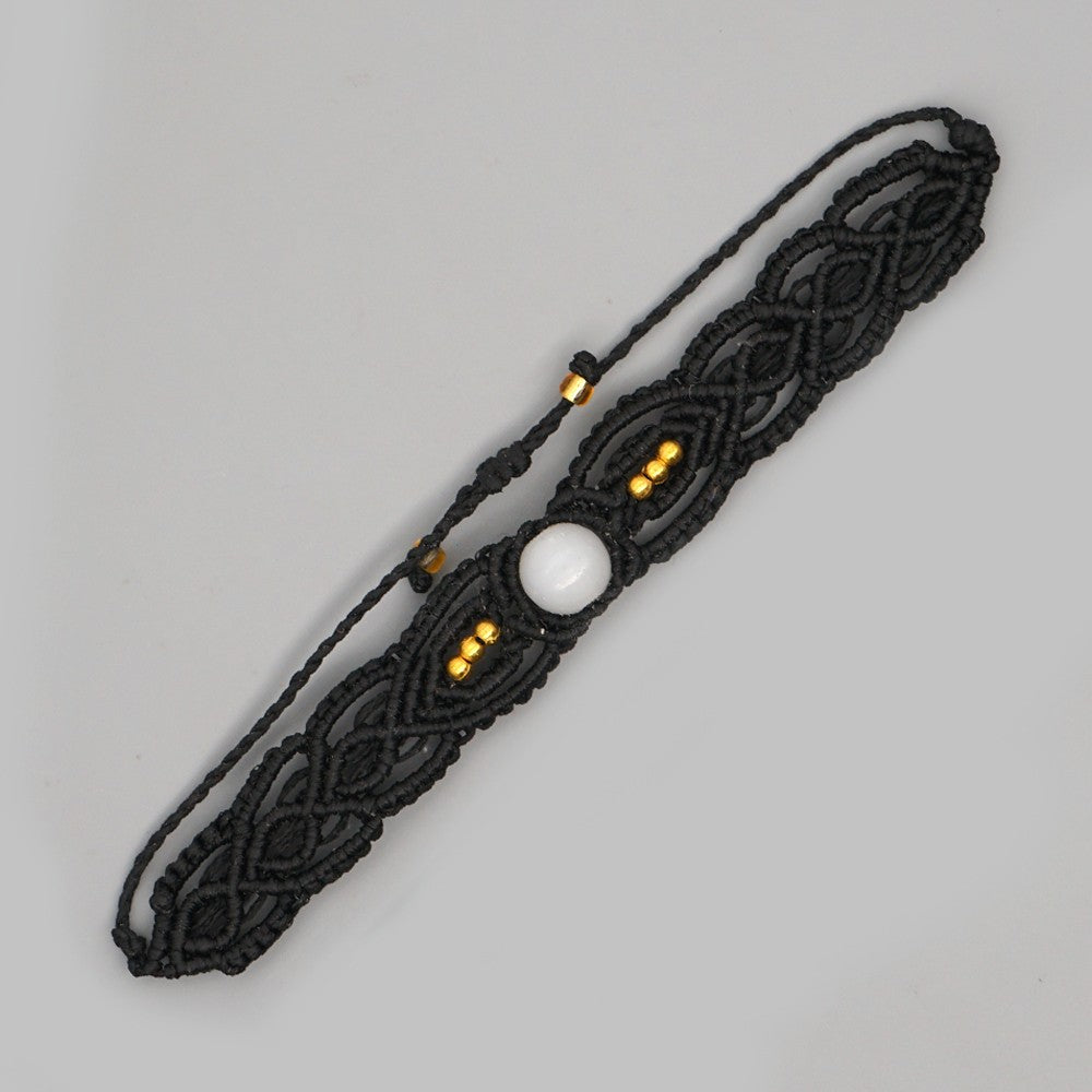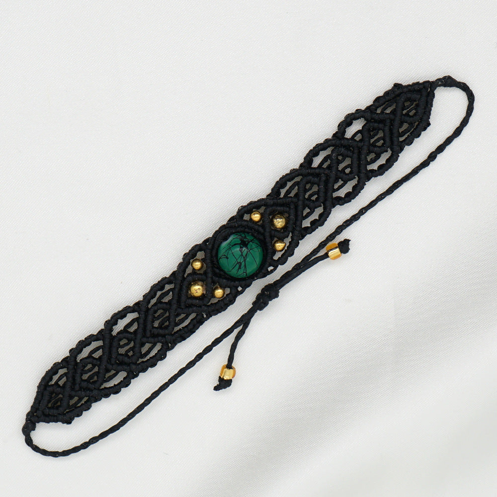 Ethnic Style Wax Rope Thread Carrying Strap Handmade Natural Stone Beaded Braided Rope Bracelet