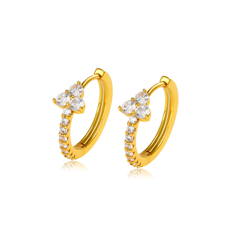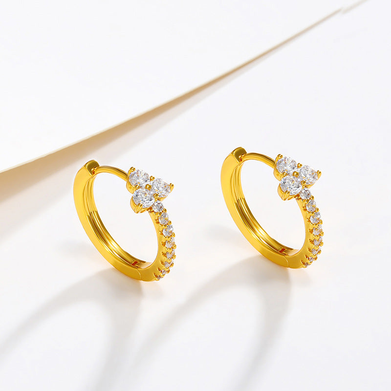 European And American Entry Lux Alloy Flower Inlaid Zirconium Earrings Luxury Temperament