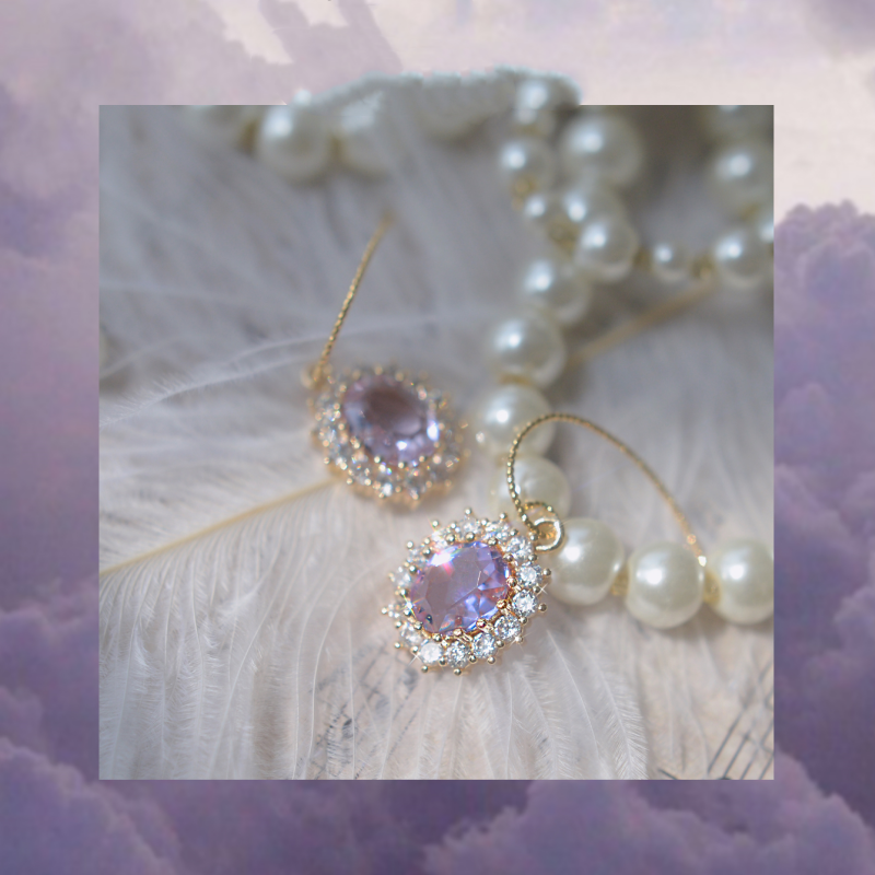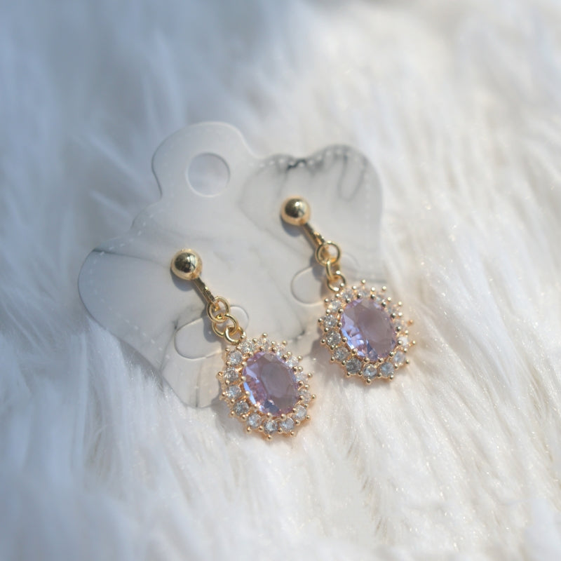 Retro Hong Kong Style Light Purple Zircon Earrings