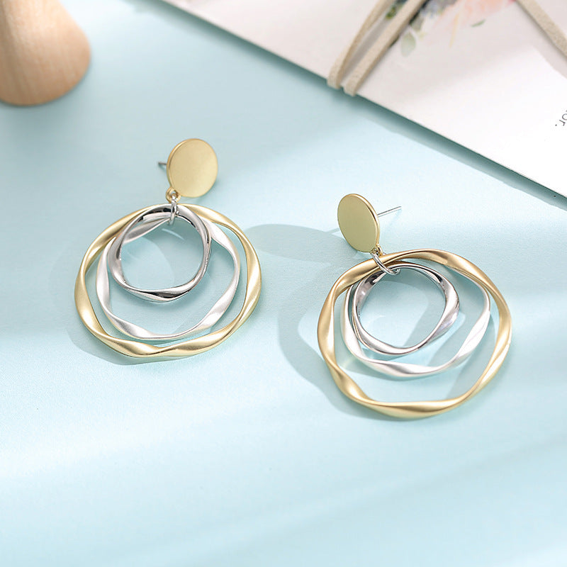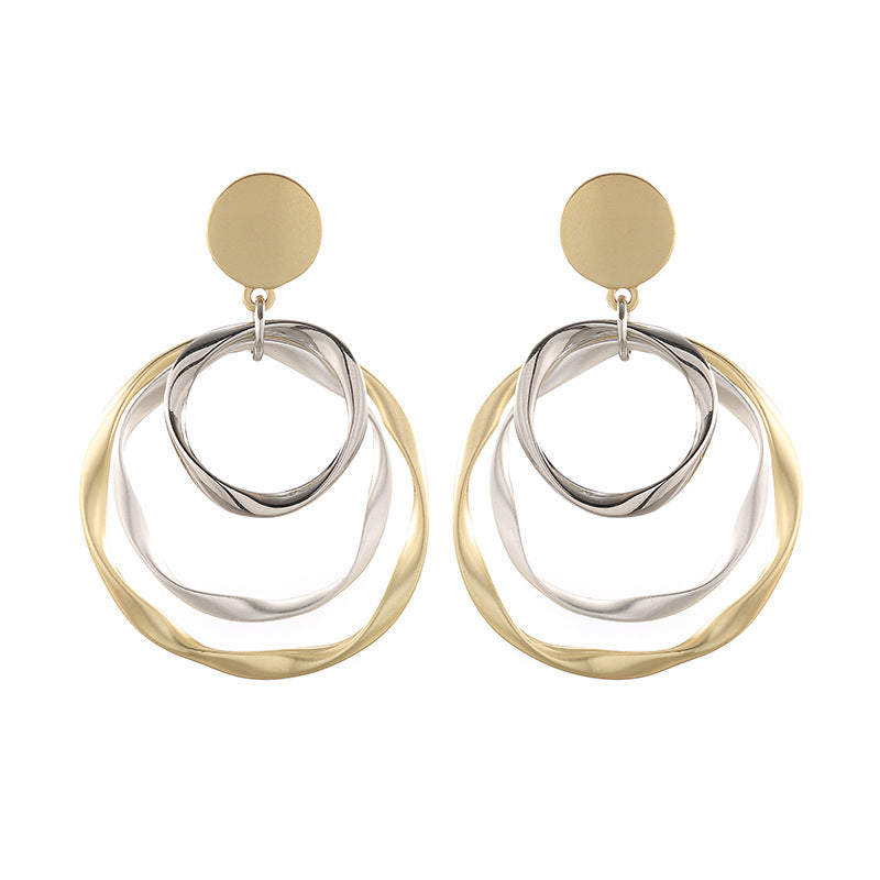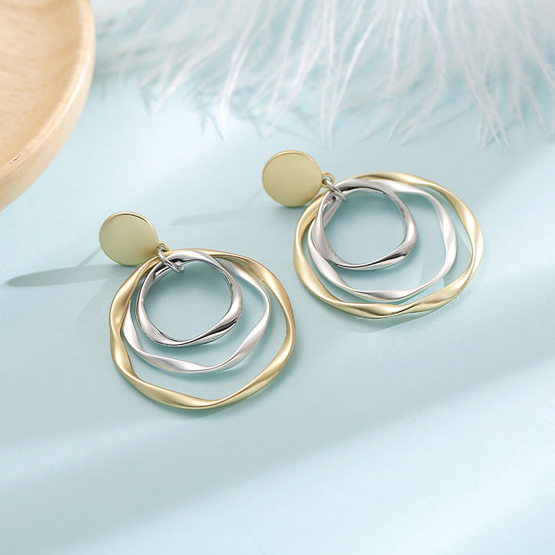 Retro Hong Kong Style Temperament Irregular With Personality Ring Ear Studs