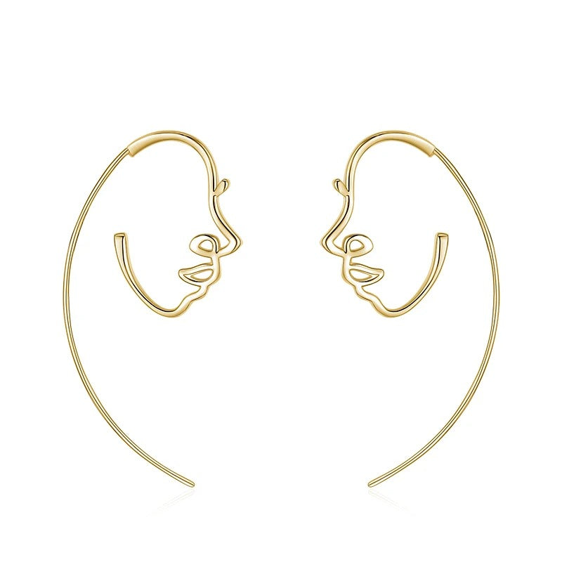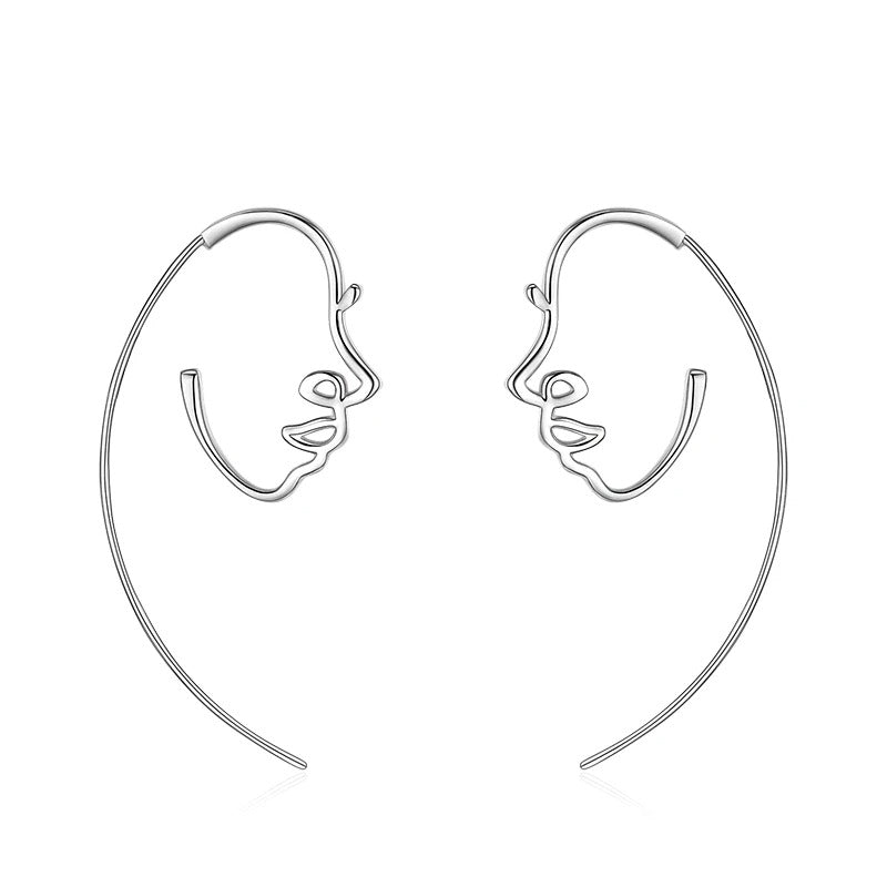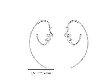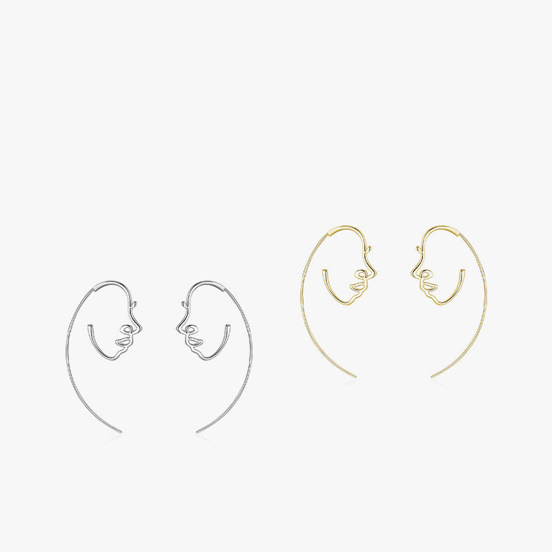 S925 Sterling Silver Special-interest Design Glossy Abstract Line Face Earrings