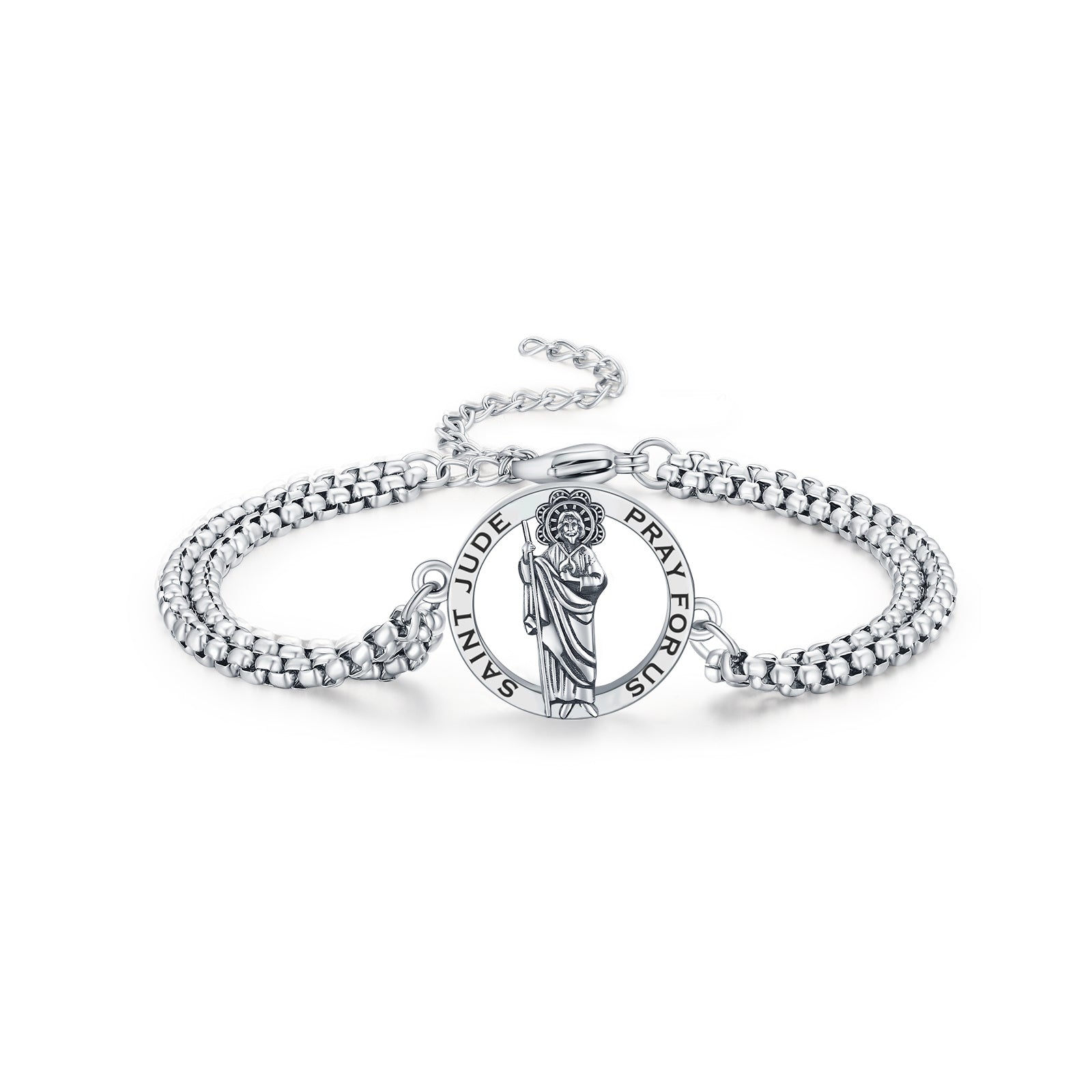 Saint Jude Bracelet with Link Chain in 925 Sterling Silver