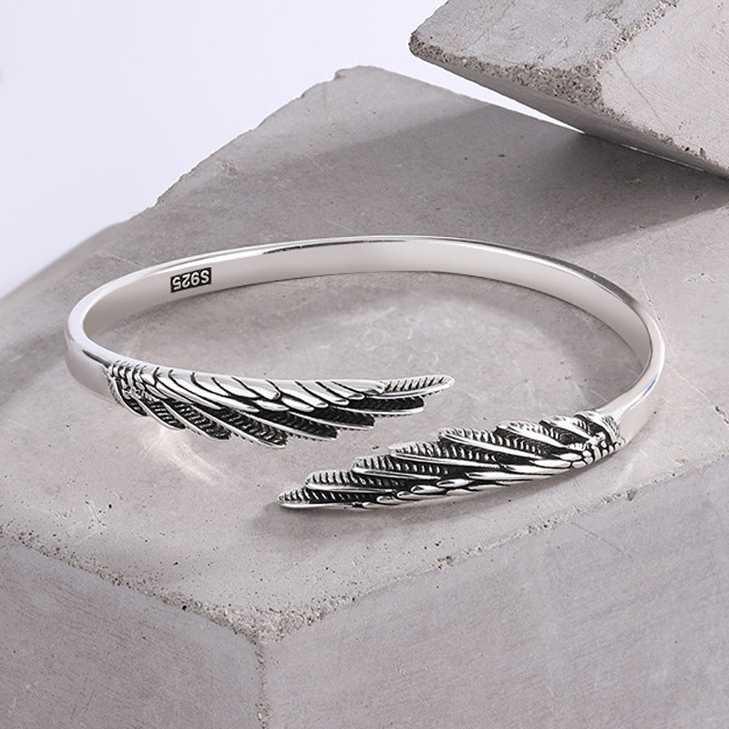 Feather Silver Plated Old Angel Wings Wings Bracelet