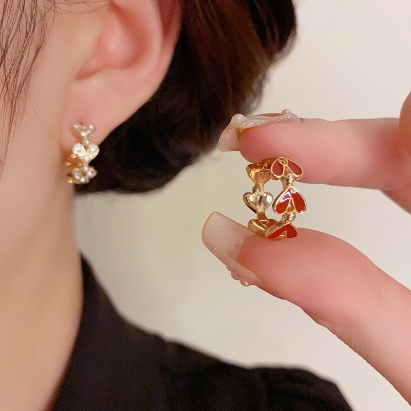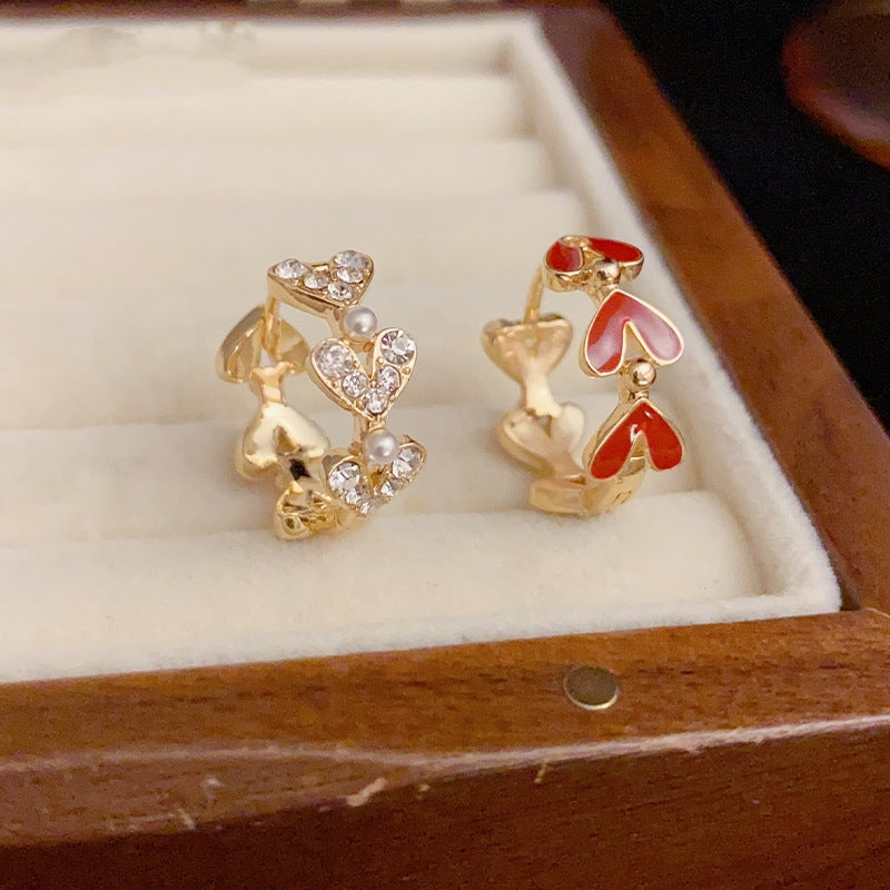 Color: red love oil dripping ear clip (thick real gold plating), Coffee Gold Black love oil dripping ear clip (thick real gold plating)