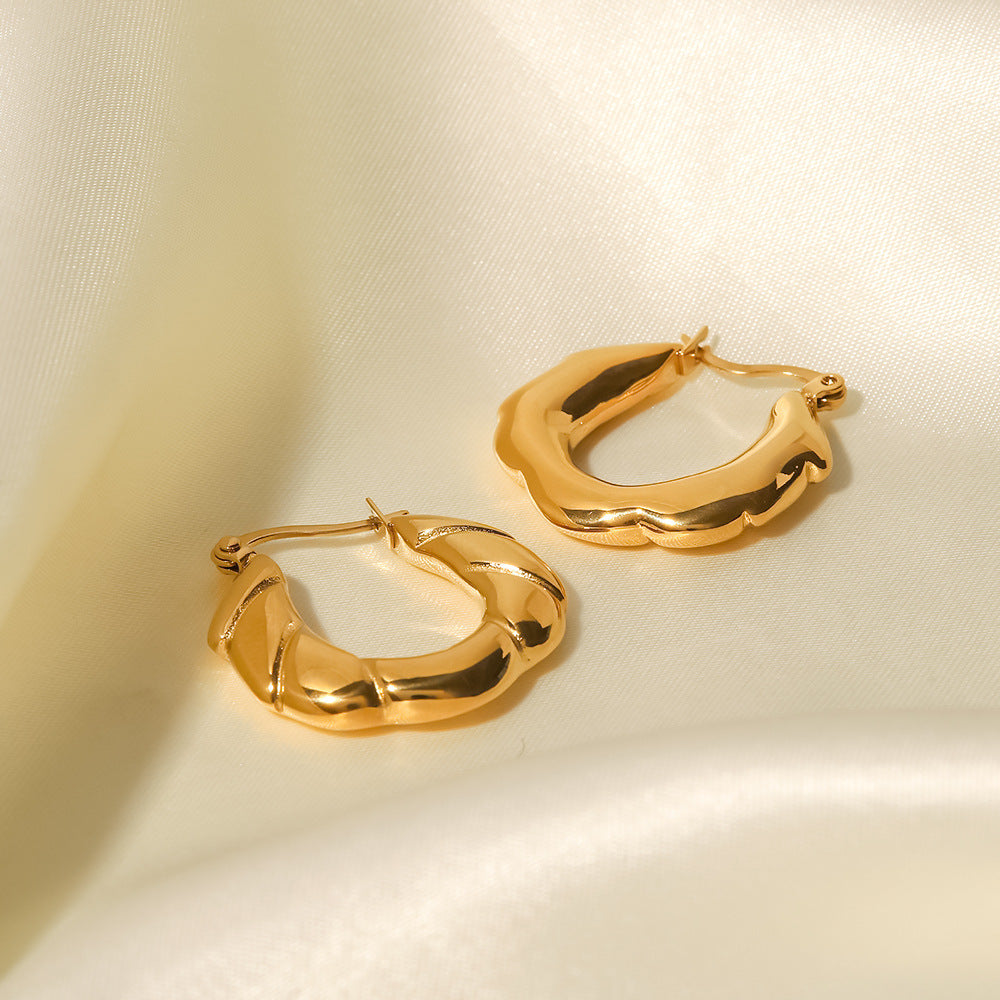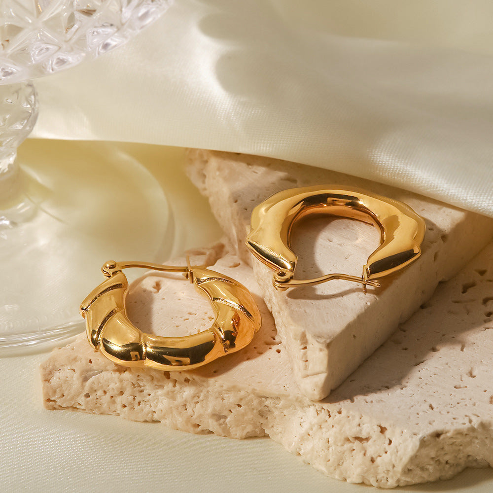 Irregular Smooth Gold-plated Stainless Steel Ring-shaped Earrings
