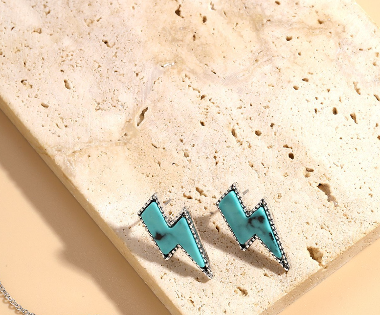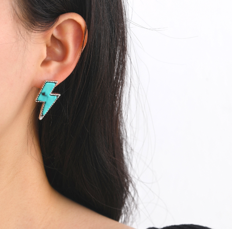 Lightning Marble Texture Retro Ethnic Style Double-sided Color Alloy Popular Earrings