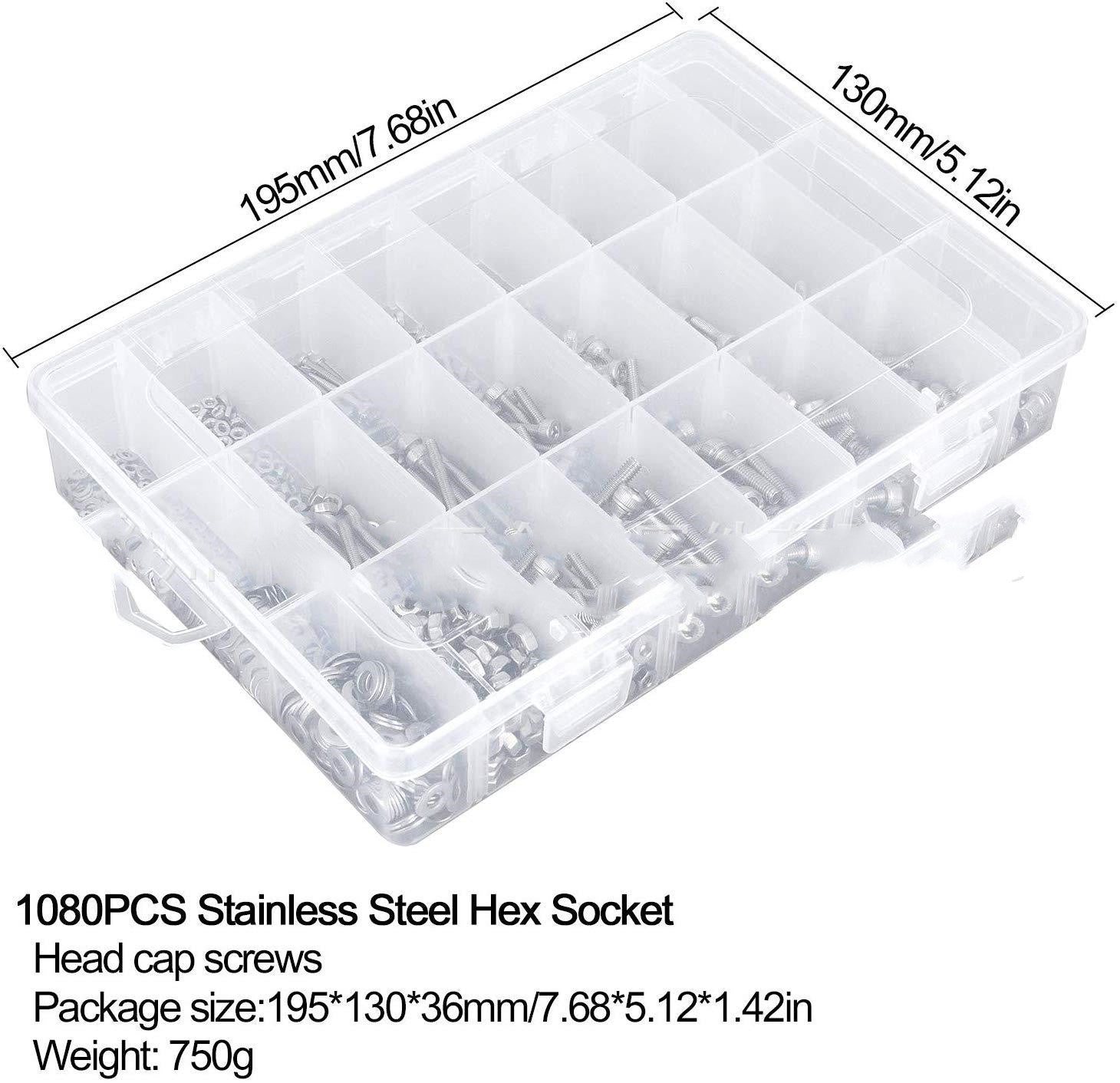 M2M4 304 Stainless Steel Knurled Cup Head Hexagonal Screws And Nuts Set 1080PCS