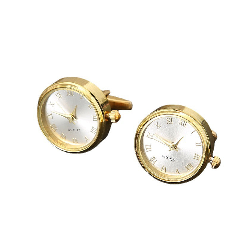 Men's Light Luxury Clock Cufflinks Fashion French Rotatable Golden Cuff