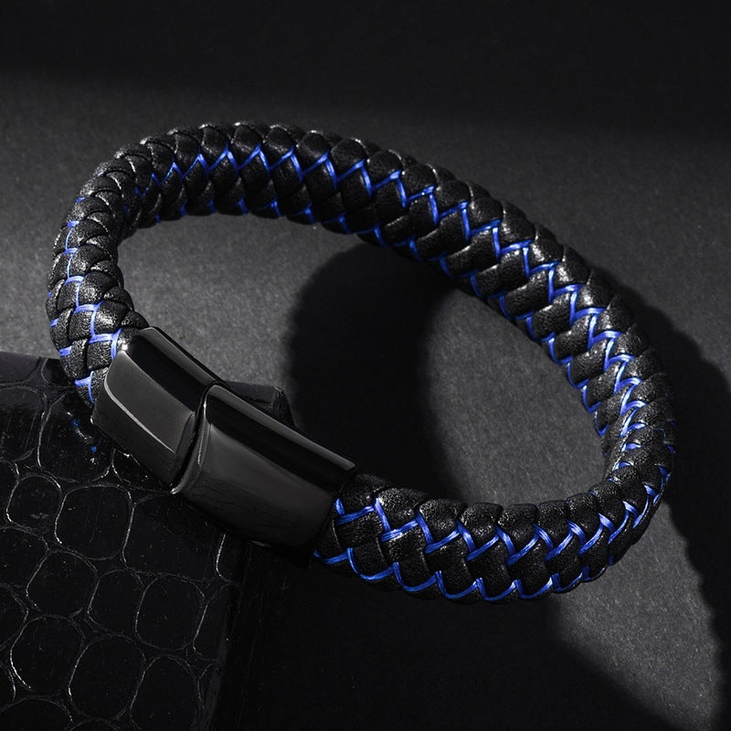 Men's Titanium Steel Magnetic Buckle Leather Rope