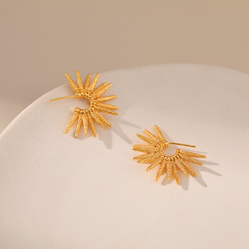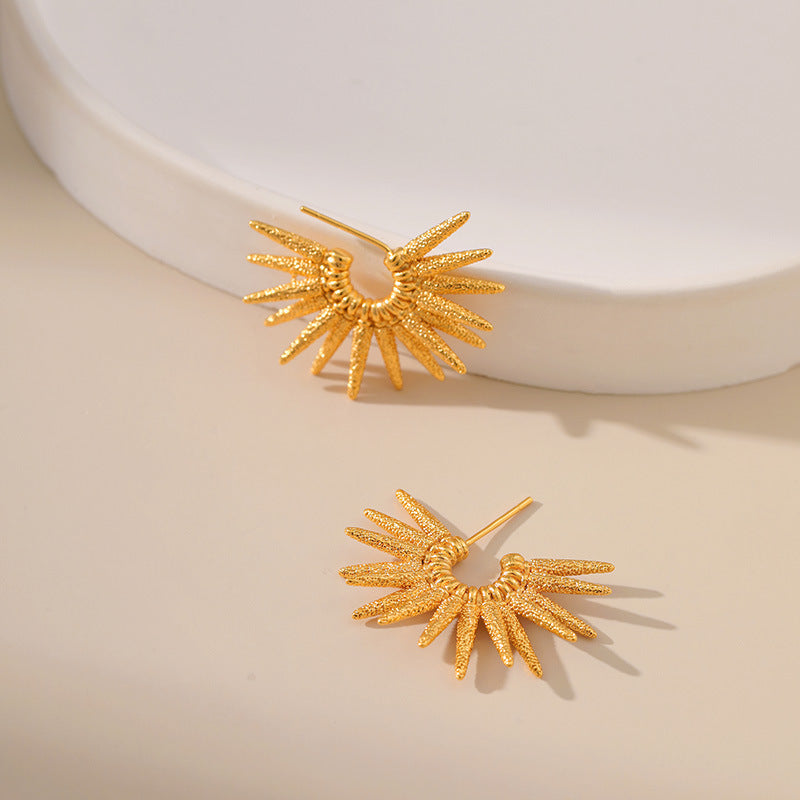 Metal Texture Punk Plated 18K Real Gold C Earrings