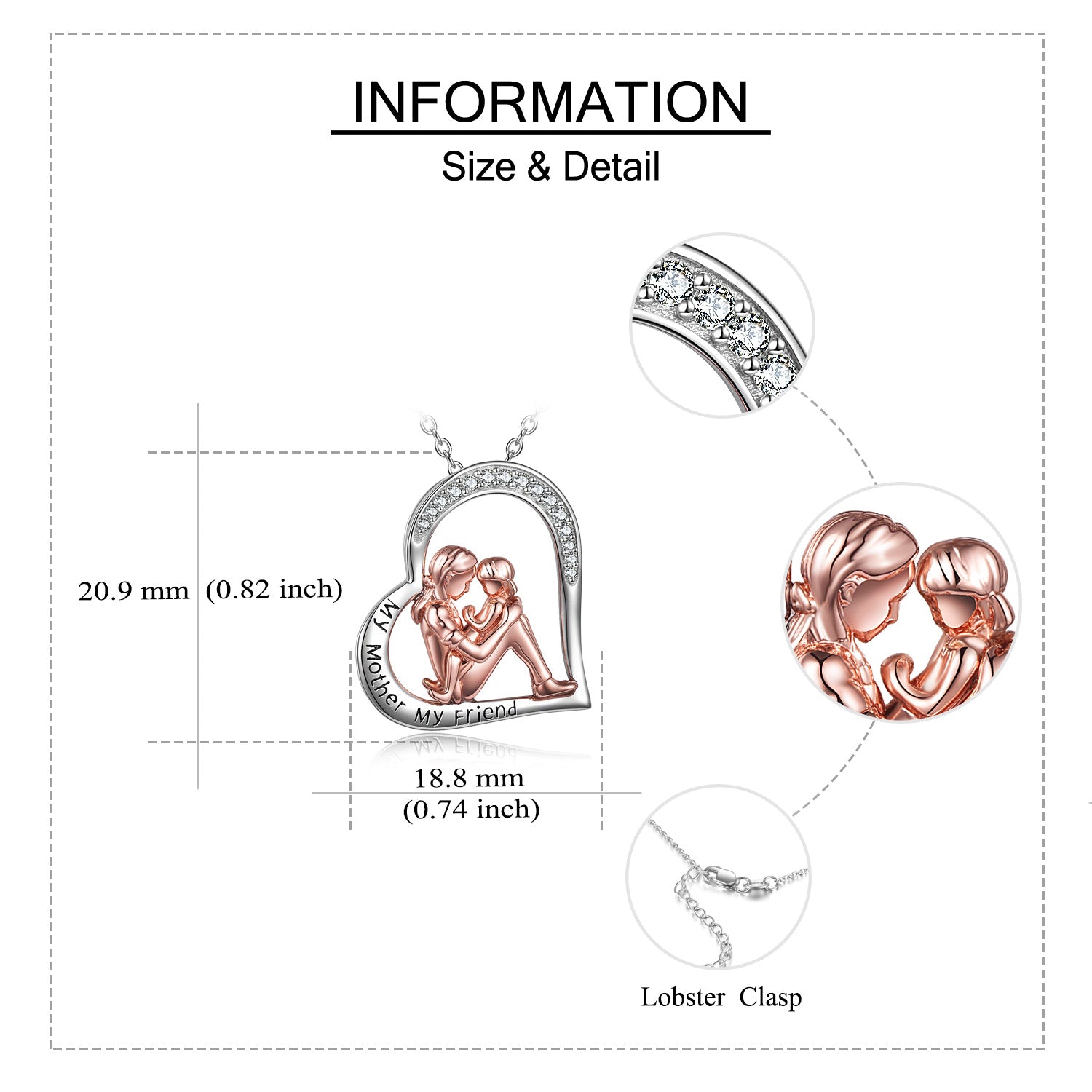 Design:"My Mother My Friend" engraved on the heart-shaped necklace represents the mother's deep love for her daughter. No matter what happens, i will always be your favorite friend. This Mother and Child necklace will be a nice gift for mother, daughter etc.