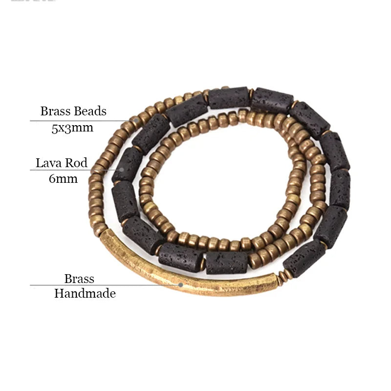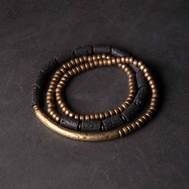 Multilayer Handmade Brass Tube Volcanic Stone Bracelet