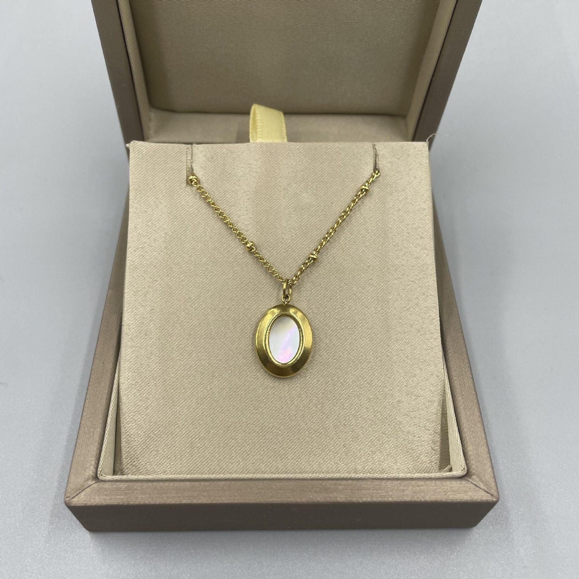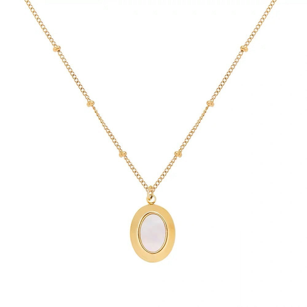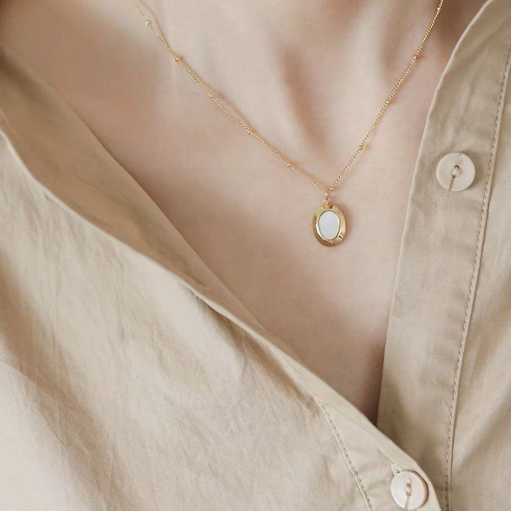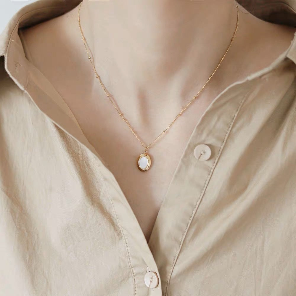 Natural Shell Oval Pendant Ball Bead Chain Clavicle Titanium Steel Plated K Gold