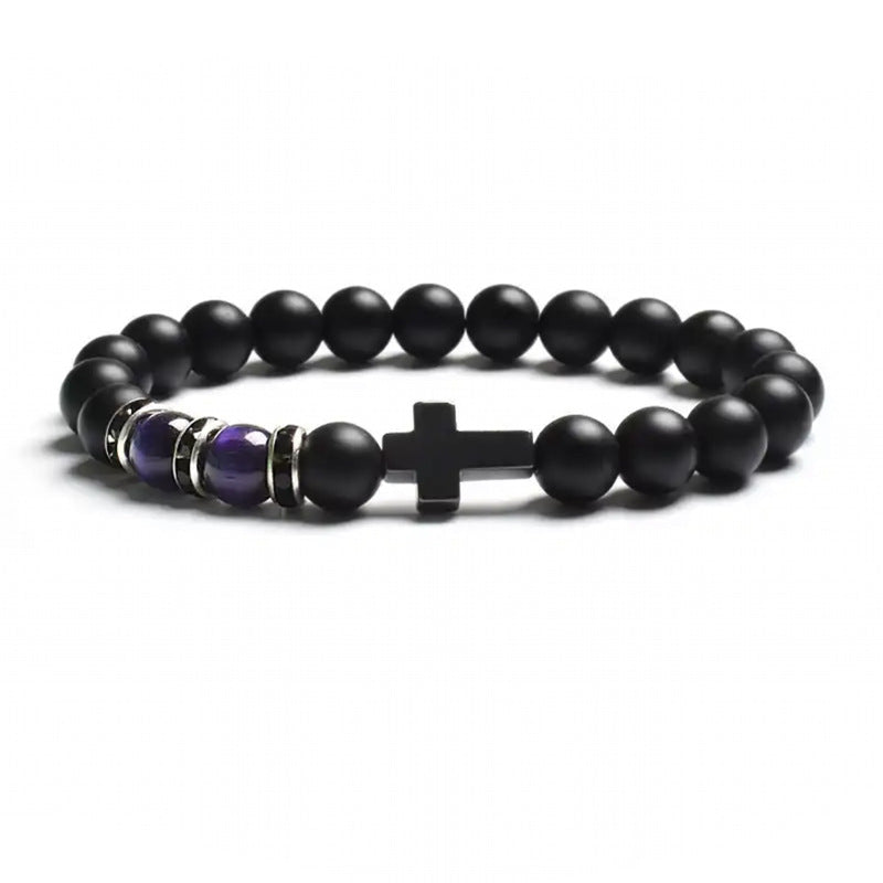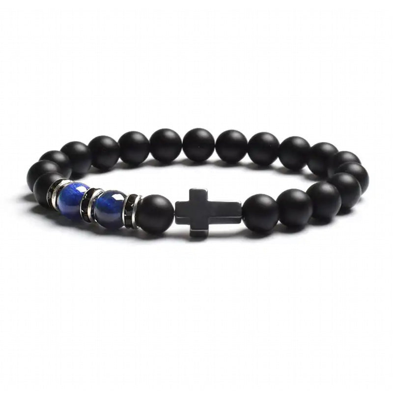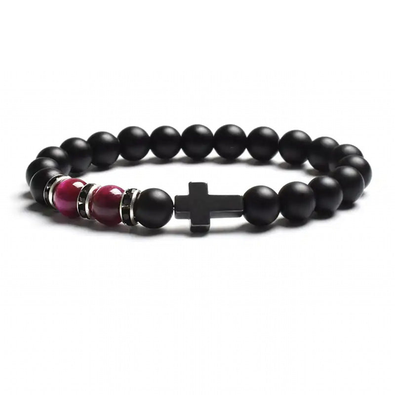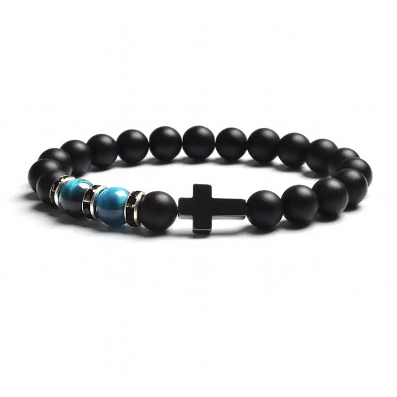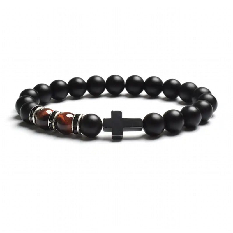 Natural Stone Tiger Eye Agate Cross Bracelet