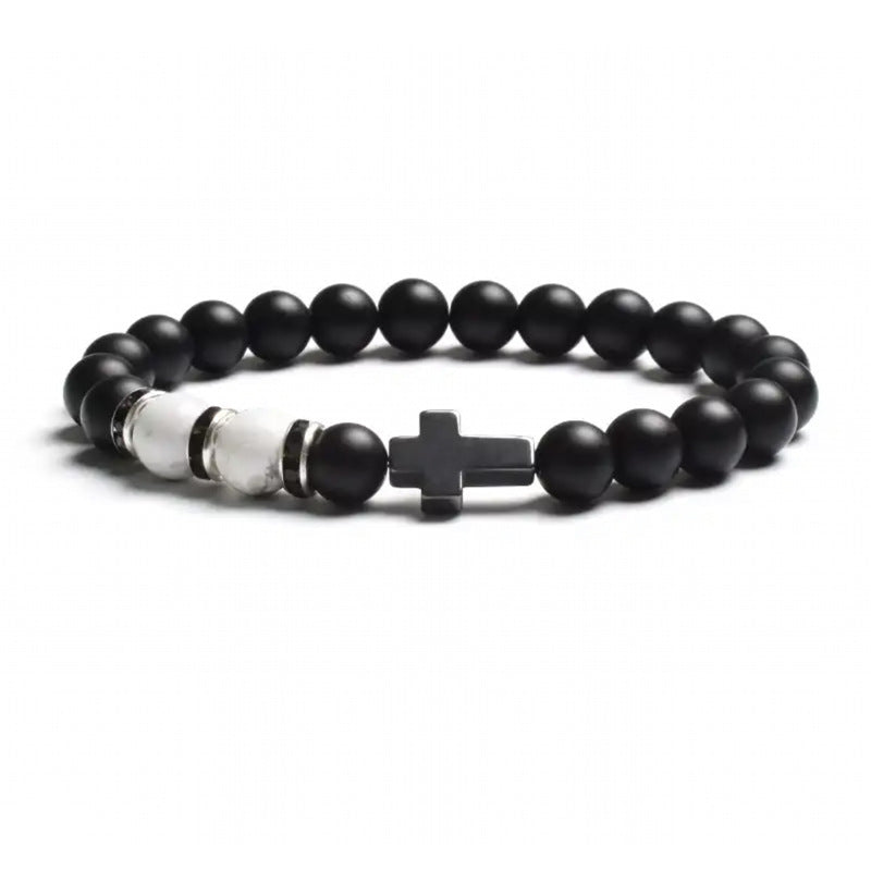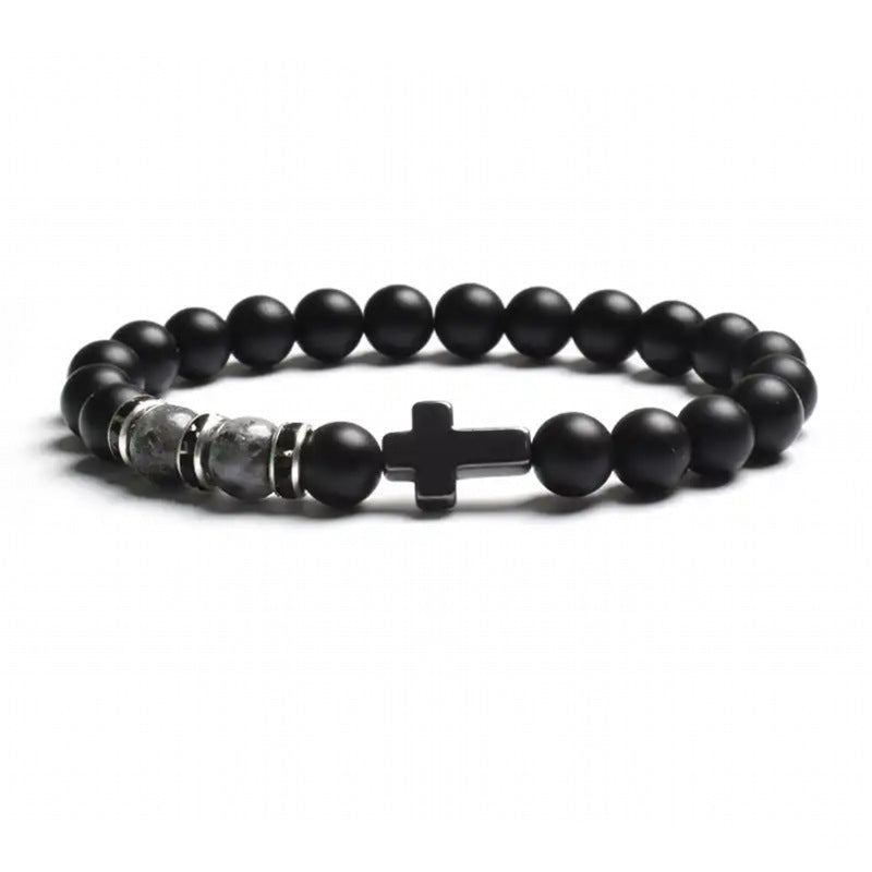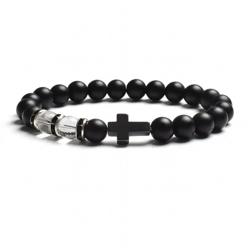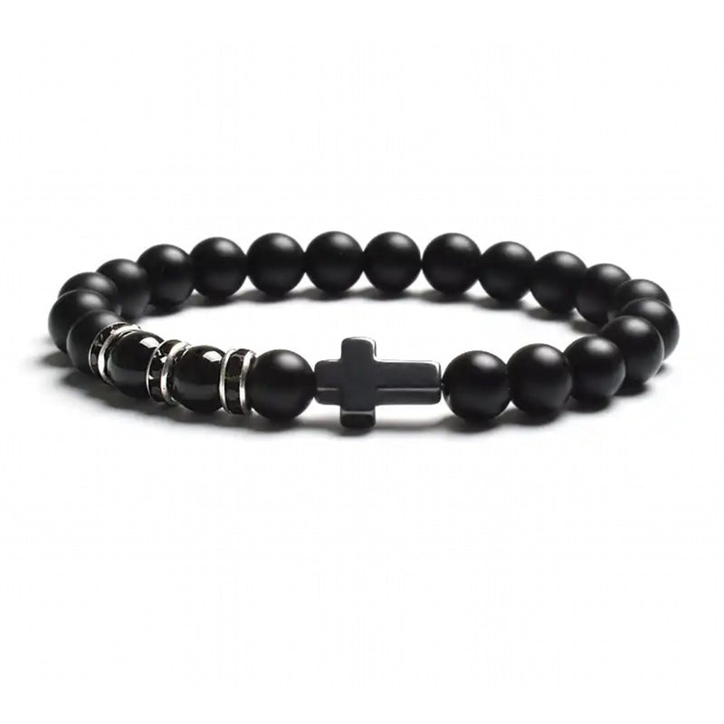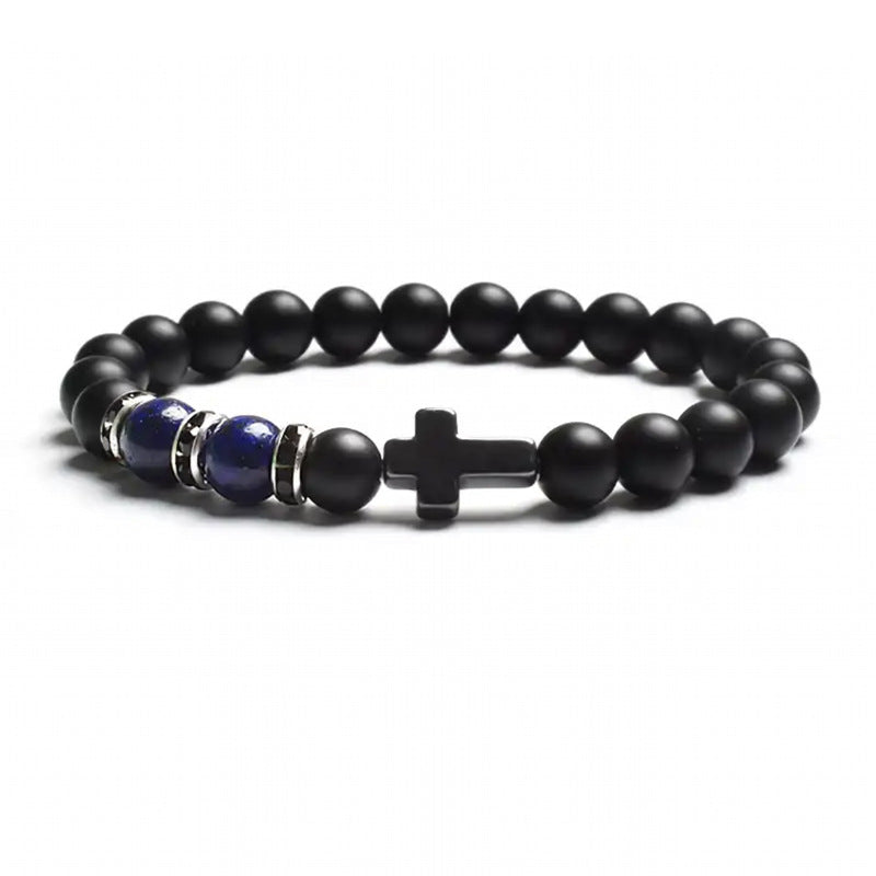 Natural Stone Tiger Eye Agate Cross Bracelet
