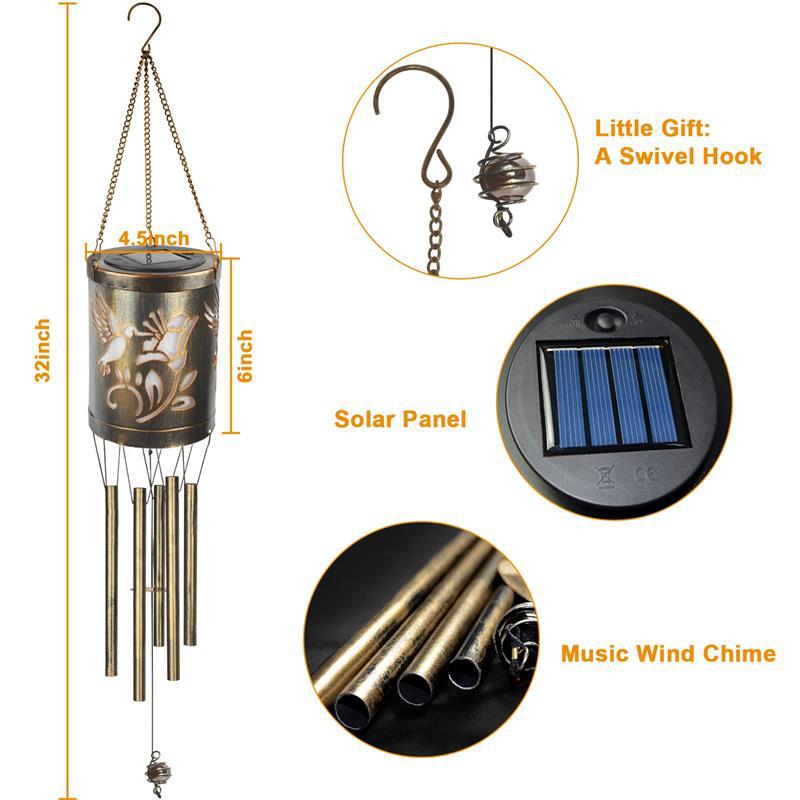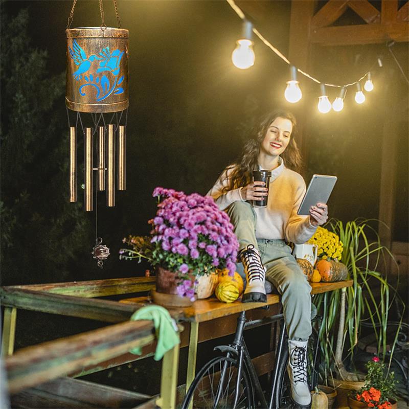 New Solar Hummingbird Wrought Iron Wind Chimes Decorative Lights