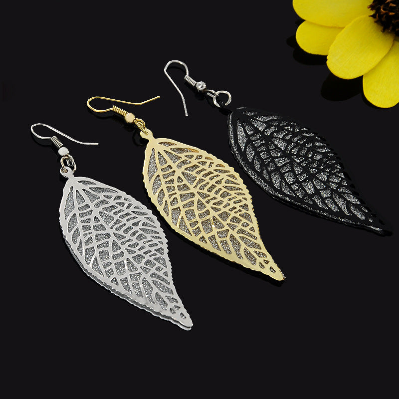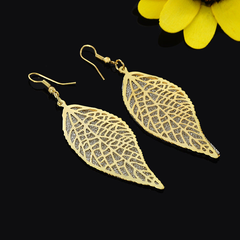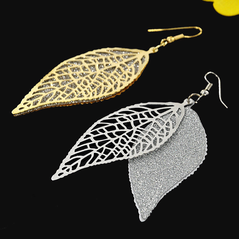 Personalized Luxury Hollow-out Double-layer Leaf Frosted Earrings Eardrops