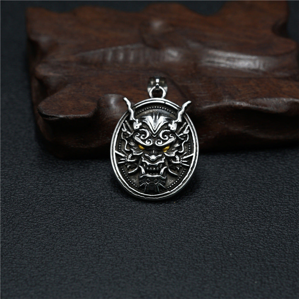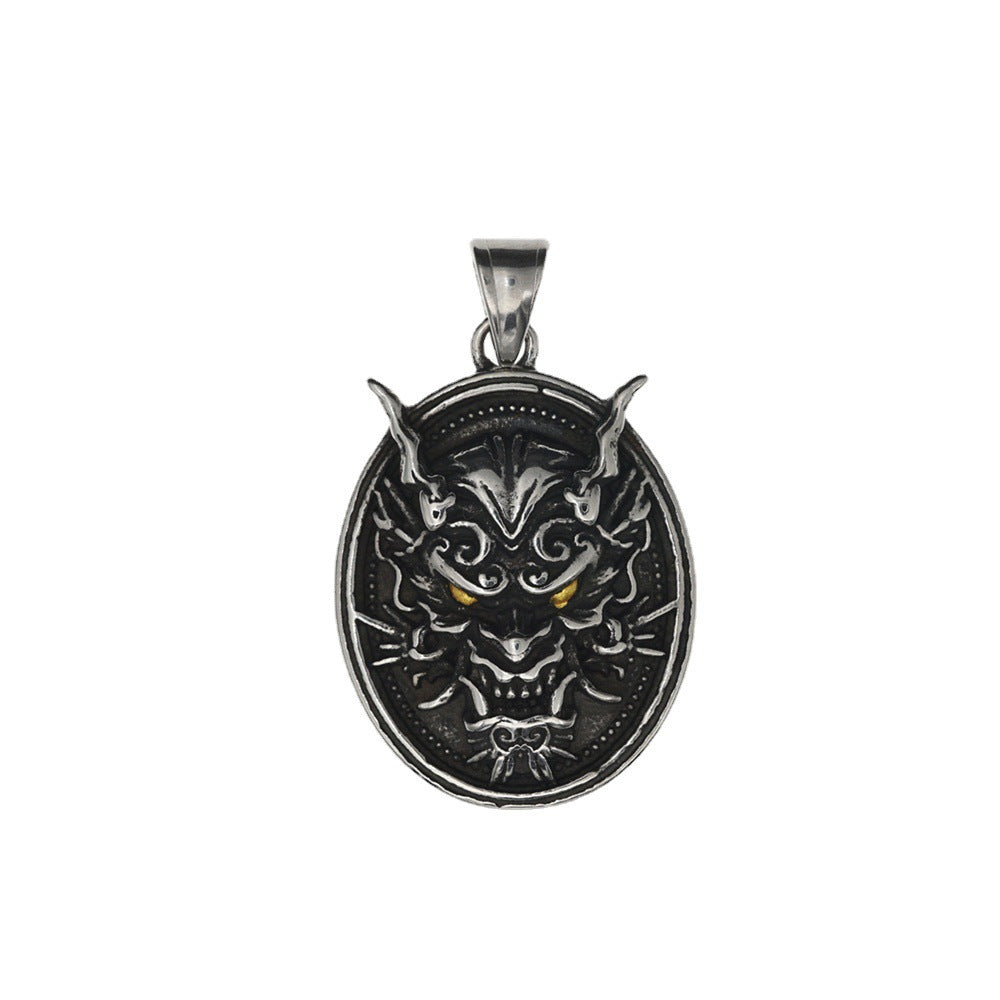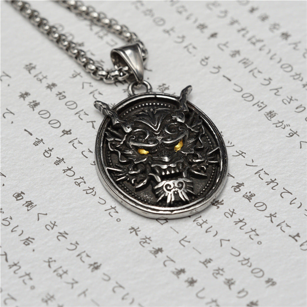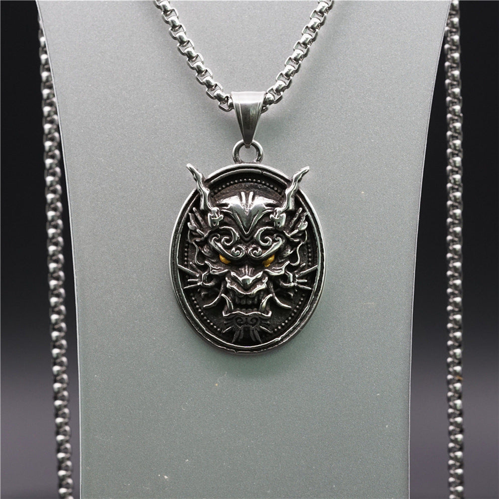 Domineering Disc Golden Eye Ghost Head Titanium Steel Men's Necklace